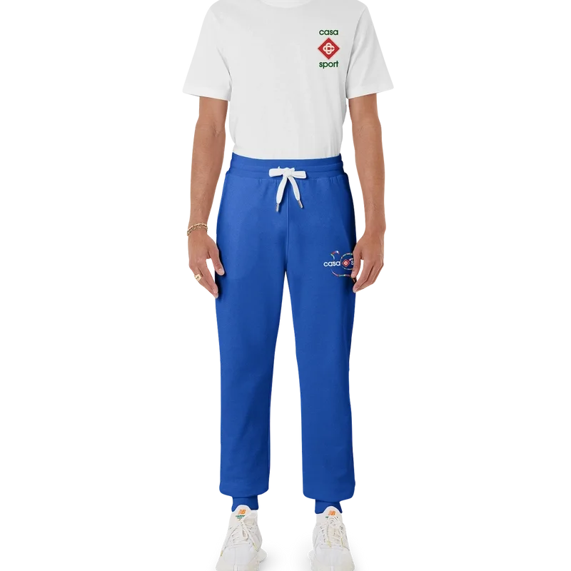 Drapeau De Collombes svarta sweatpants i ekologisk bomull har säsongens konstverk med märkets signatur Casa Sport-ikonografi. Kompletterade med dragsko med guldspetsar, elastiska muddar, sidfickor och Casablanca Paris-märkesetikett, designade för en klassisk passform.
