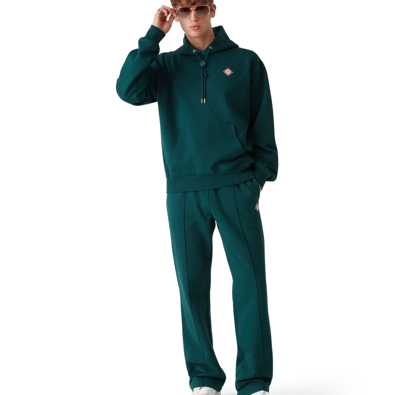 Jacquard Monogram-träningsbyxorna har en klassisk design i husets signaturfärg grönt. De kompletteras med Pearl Diamond-logotypen, dragsko med guldspetsar, sidofickor i sömmarna och en påsydd bakficka.