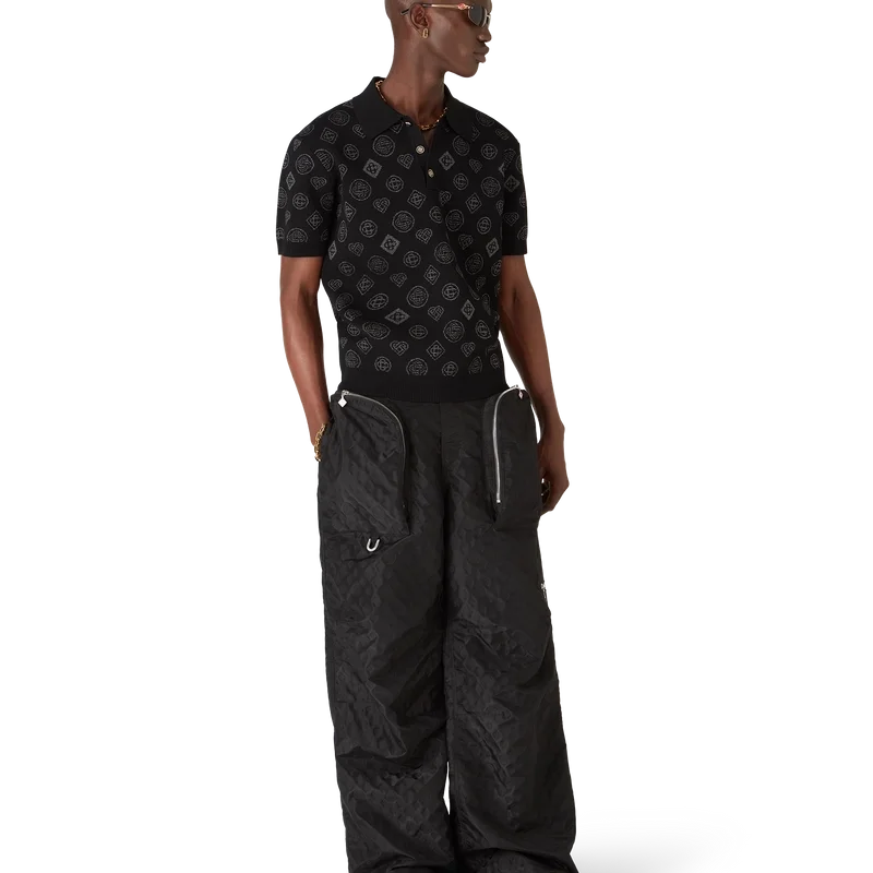 Monogram Jacquard Pikétröja är en kortärmad modell med husets ikoniska monogrammönster. Detta mönster skiljer sig från våra klassiska monogram, eftersom det består av en blandning av olika former och symboler som bildar ett sammanhängande mönster. Kompletterad med knäppning, signaturknappar med sammanflätade CC-logotyper och guldkantad emalj, ribbad krage, muddar, nederkant och knäppning.