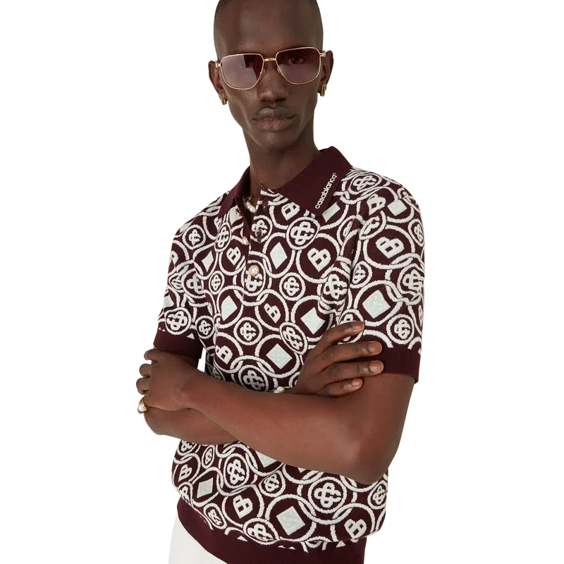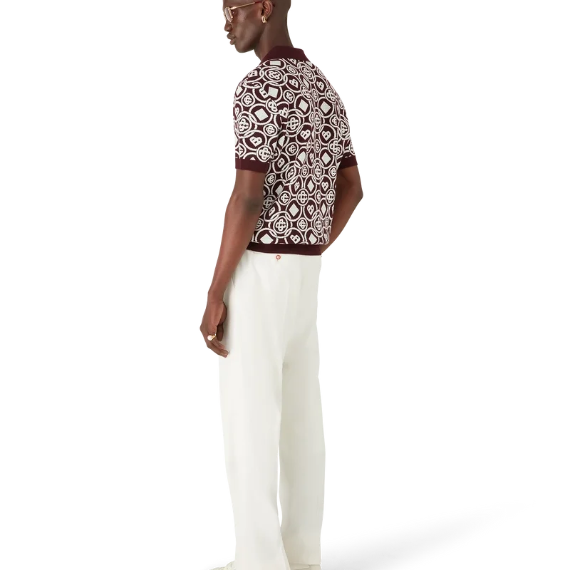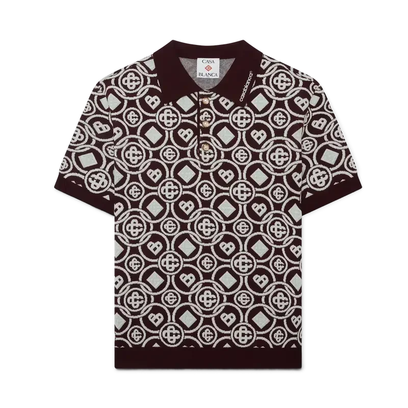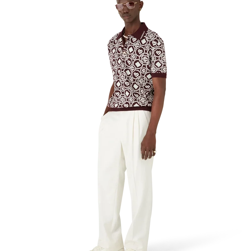 Monogram-pikétröjan i bomullstrik är en kortärmad modell med säsongens nya Honeydrew-logotypmönster – detta mönster skiljer sig från våra andra monogram, eftersom det kombinerar unika former för att bilda ett sammanhängande mönster. Det är mer av en ikonbaserad design. Avslutas med knäppning, signaturknappar med guldkant och pärlemor samt ribbad krage, muddar och fåll.