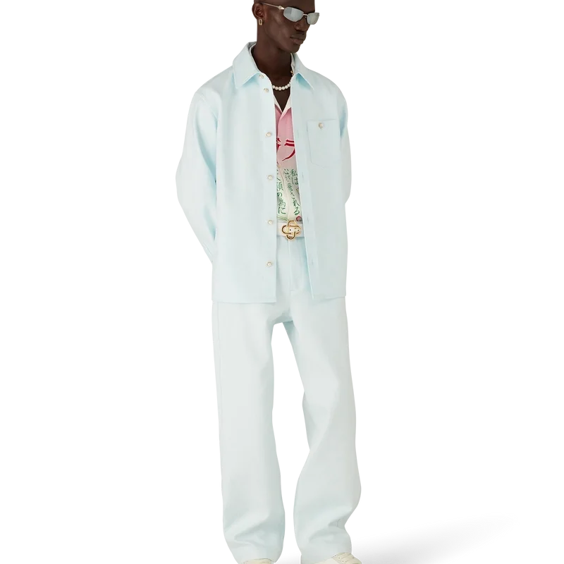 Byxorna i bomull med monogram har raka ben och pryds av märkets Honeydew-logotyp i ett upprepat mönster. Detta mönster skiljer sig från våra andra monogram, eftersom det kombinerar unika former till ett sammanhängande mönster. Kompletteras med bälteshällor, dragkedja, snedställda fickor och bakfickor.