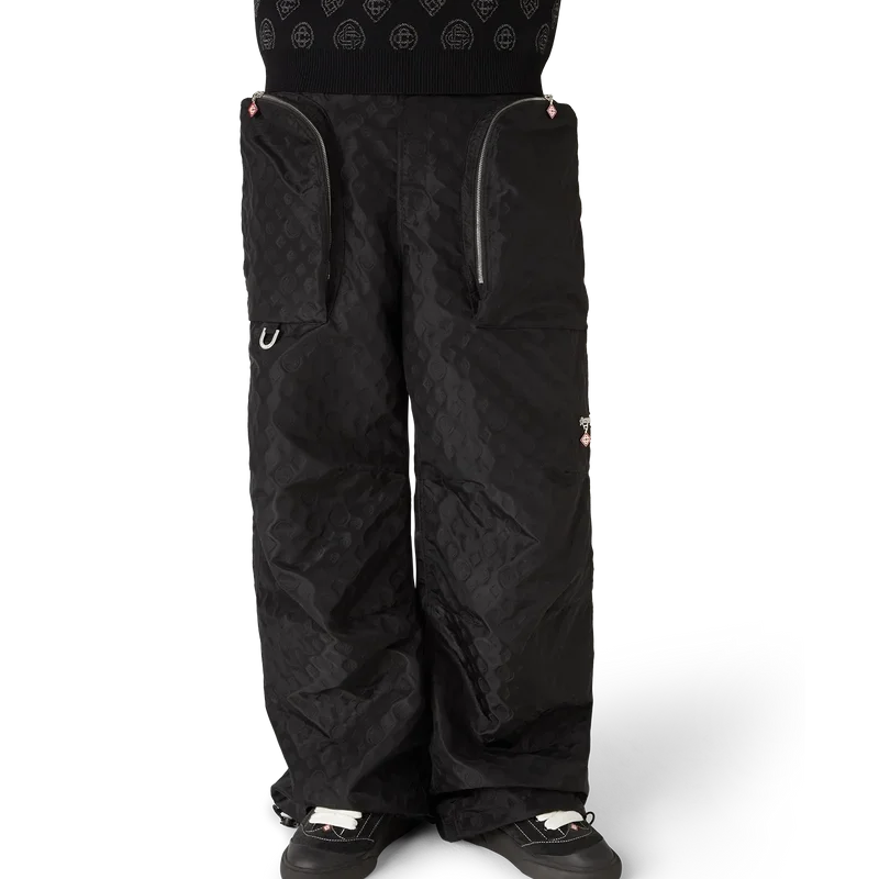Nylon Jacquard-cargobyxorna har raka ben och pryds av husets Honeydew-logotyp i ett upprepat mönster. Detta mönster skiljer sig från våra andra monogram, eftersom det kombinerar unika former till ett sammanhängande mönster. Kompletterade med bälteshällor, dragkedja, påsydda fickor med dragkedja med husets signaturdiamantlogotyp på dragkedjeflikarna, silverpläterade detaljer och dragsko vid anklarna med sammanlänkade CC-knäppen.