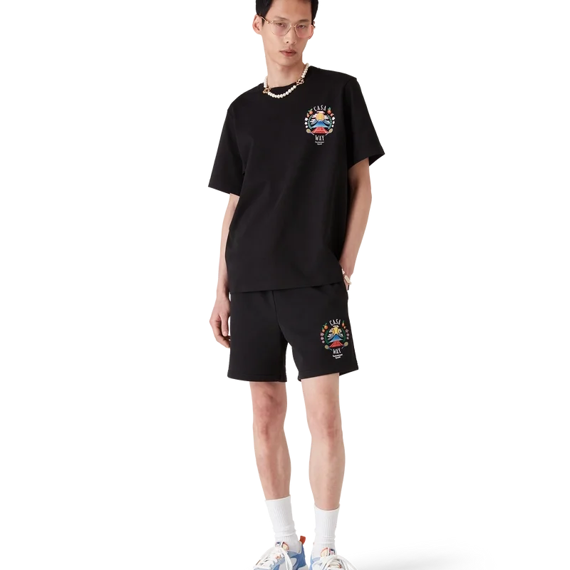 Casa Way Mountain Sweatshorts är ett sportplagg tillverkat av ekologiskt bomullstyg med husets säsongsbetonade konstverk som följer berättelsen om den ikonografiska stil vi har utforskat – digitalt skapade konstverk som visar vårt bergslogo, med olika linjer och gradienter, som skapar ett starkt varumärke.