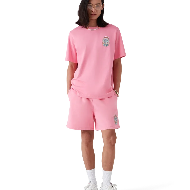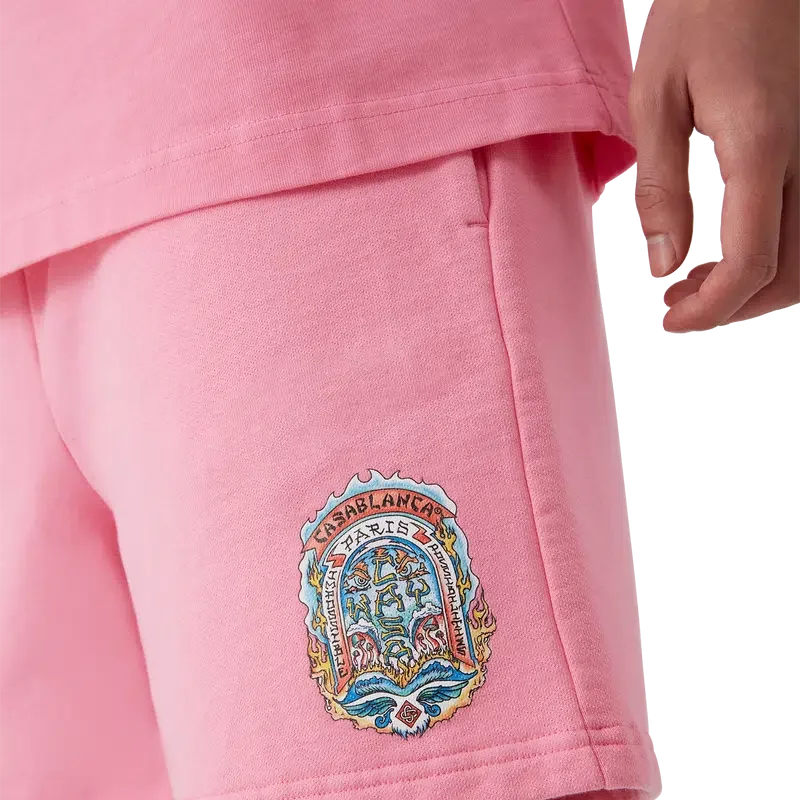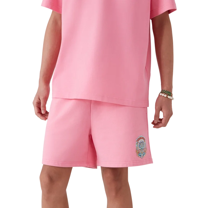 De här sweatshortsen med Gothic-logotypen är ett sportplagg tillverkat av ekologisk bomull och har den staplade Gothic-logotypen med gotisk typografi inspirerad av gatukulturen. De kompletteras med en elastisk midja, dragsko med guldspetsar, snedställda sidfickor och en påsydd bakficka.