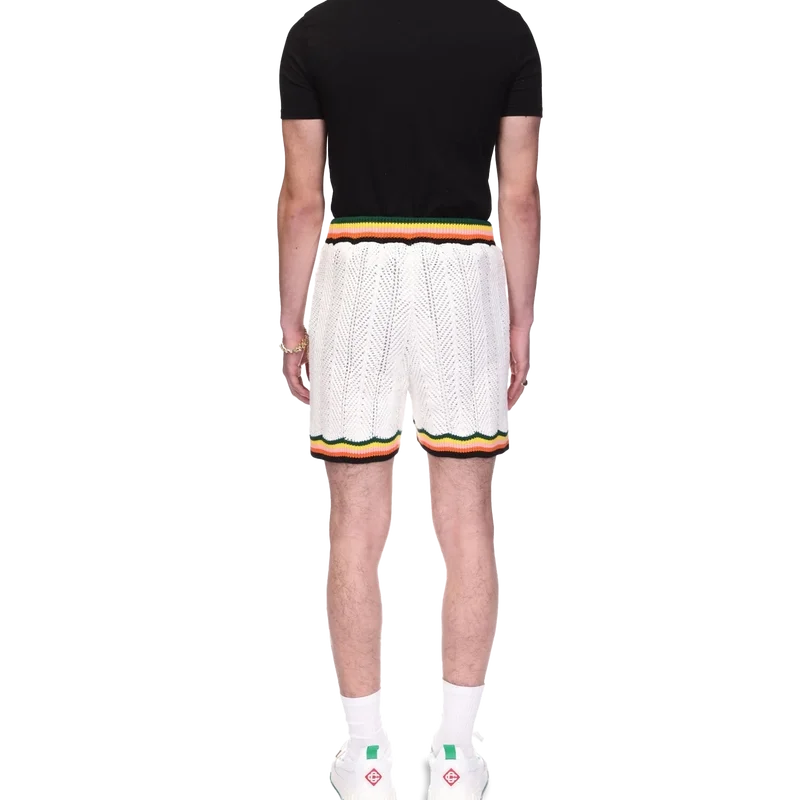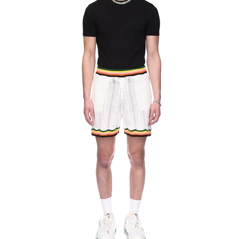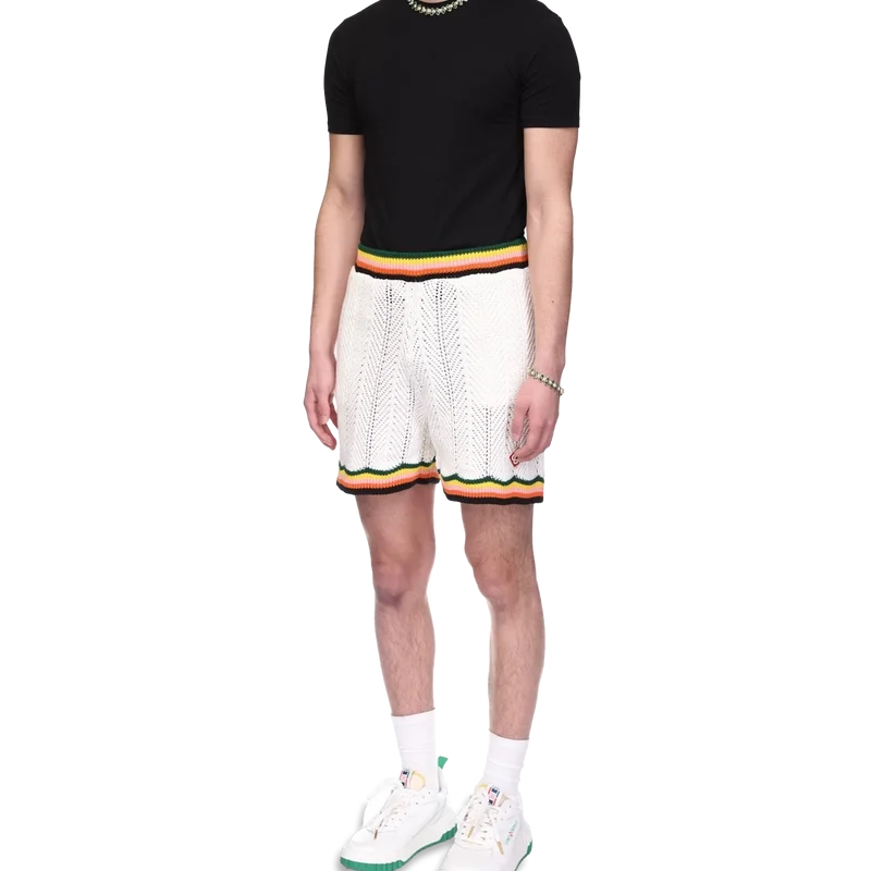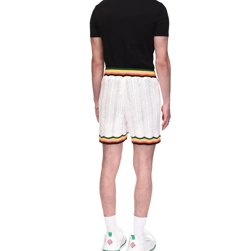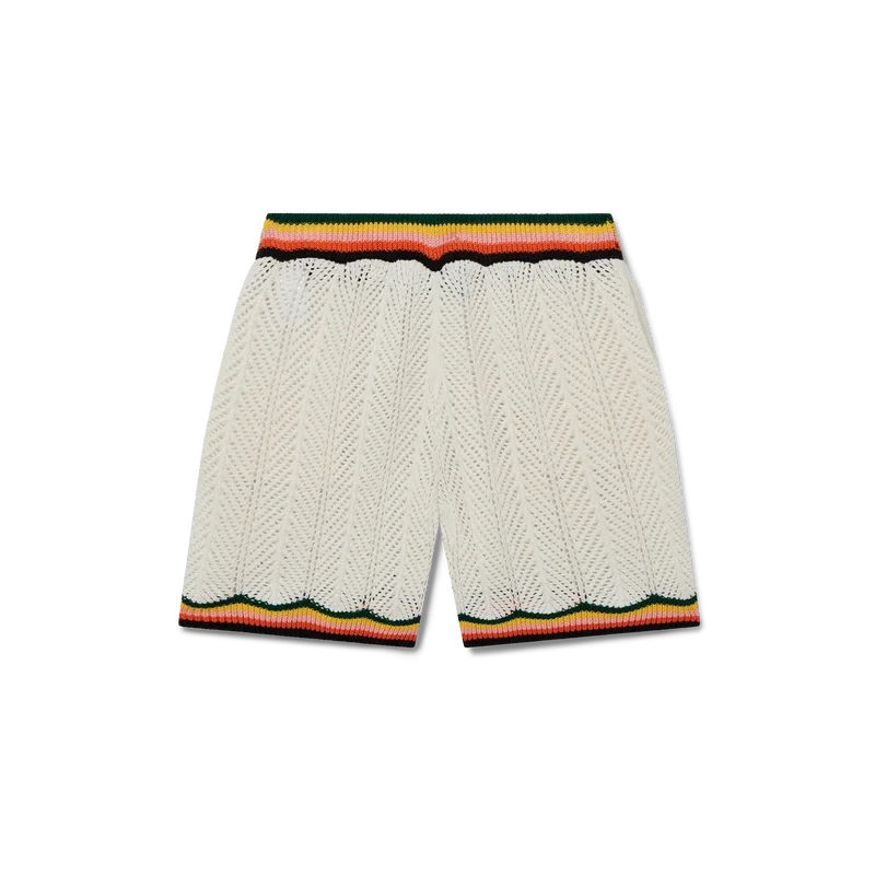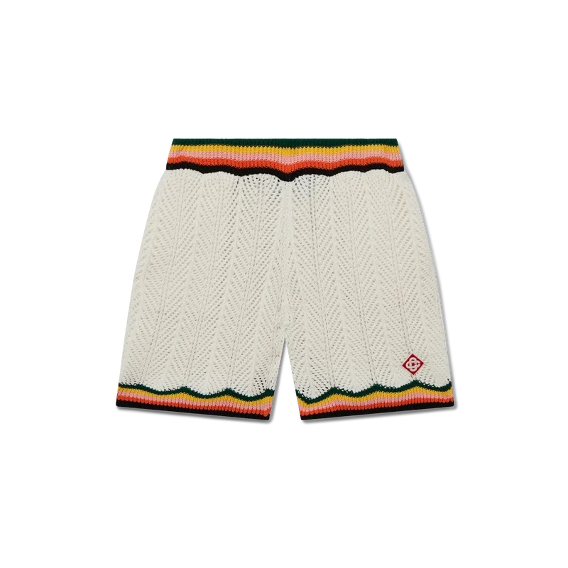 Chevron Lace Shorts är tillverkade av stickat bomullstyg och har märkets signaturdiamantlogo. Kompletteras med ett kontrasterande chevronmönster runt den ribbade midjan och fållen i säsongens färger, sidfickor och invändig dragsko.