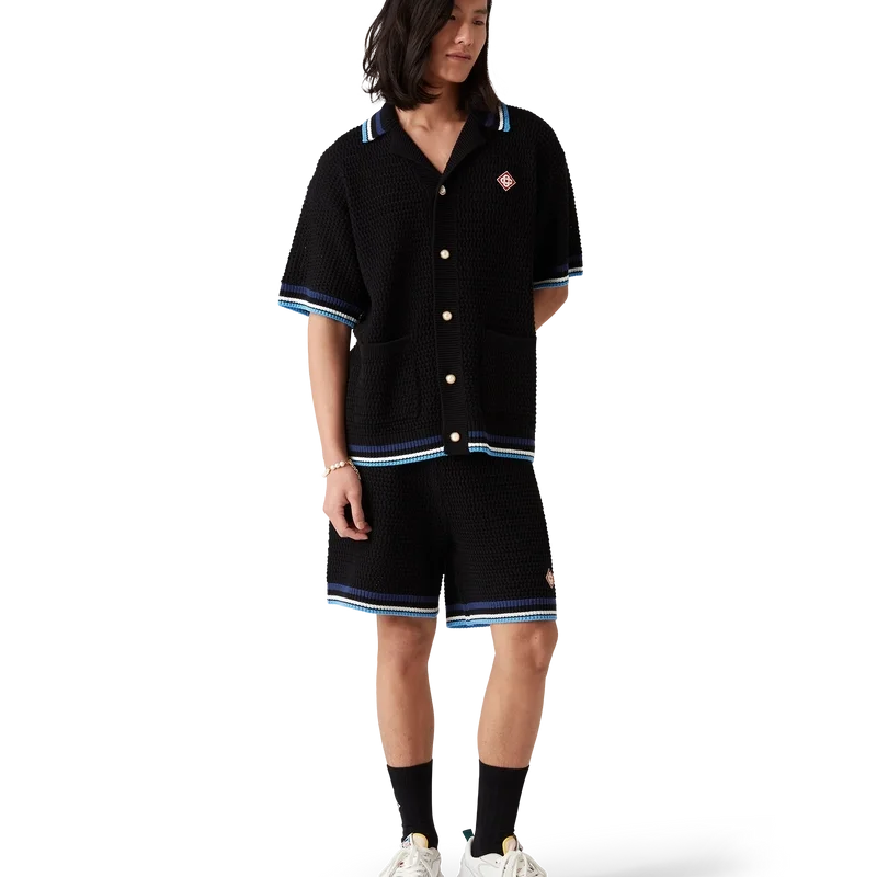 De gotiska virkade Shortsen har en mjuk struktur och är tillverkade av stickat bomullstyg med husets signaturdiamantlogo. De har en ribbad, elastisk midjeresår med dragsko, sidfickor och kontrastränder på benen.