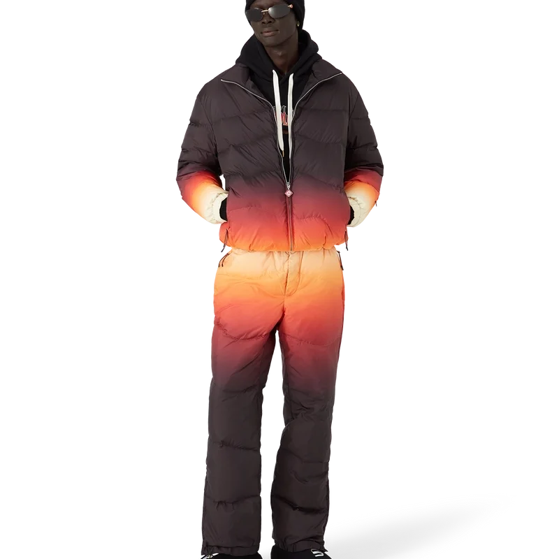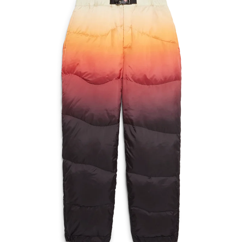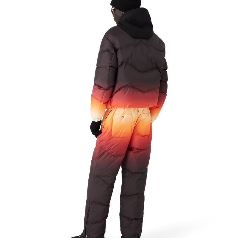 Skidbyxorna har en elegant design från Apras-Sport och är tillverkade av tyg med ton-i-ton-tryck. De präglas av en mångfärgad ton-i-ton-effekt inspirerad av det spektakulära alpglödet som lyser upp Japans bergiga landsbygd. De påminner om den magiska övergången när rosa och lila nyanser sköljer över snötäckta toppar och landsbygdens dalar lyser i det sista ljuset. Kompletterade med elastisk stängning fram, sidfickor med dragkedja och bakfickor prydda med silverpläterade detaljer samt dragkedja vid anklarna.