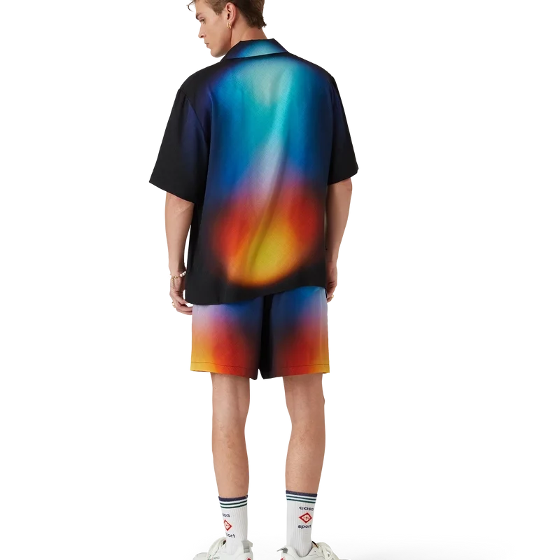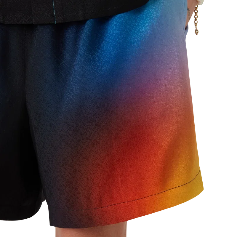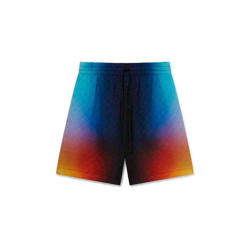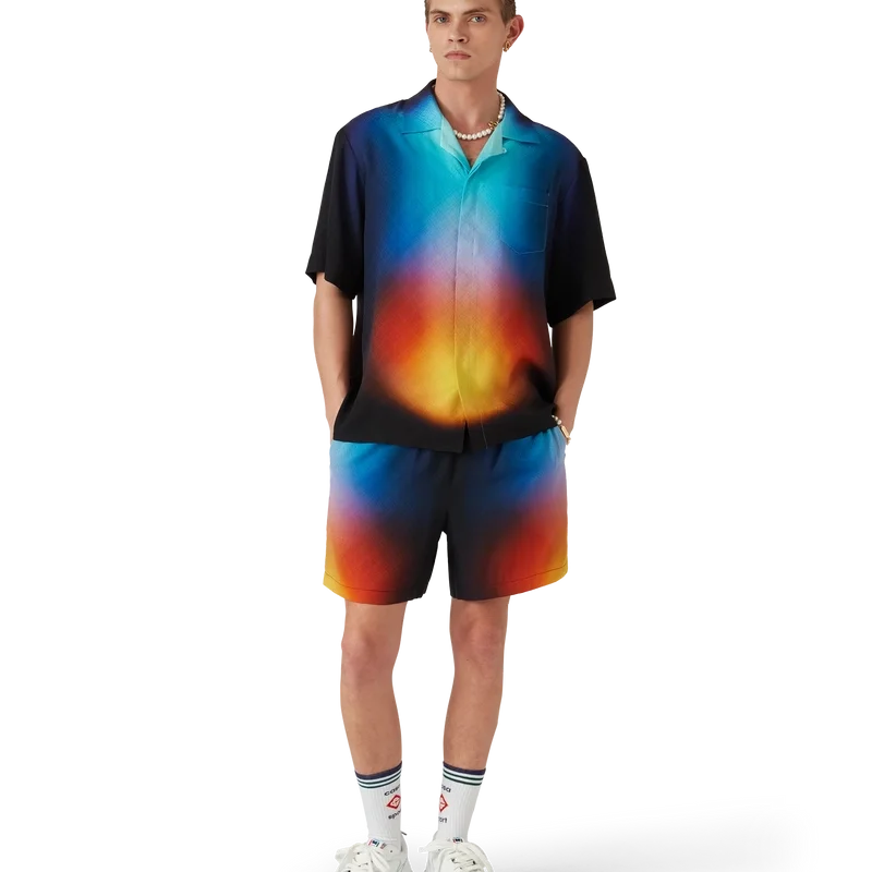Gradient Silk Shorts är ett tryckt mönster med säsongens gradientfärger, tillverkat av siden. Avslutade med elastisk midja, dragsko, sidofickor i sömmen och en påsydd bakficka. Designade för att bäras med den matchande Gradient Silk Skjorta.