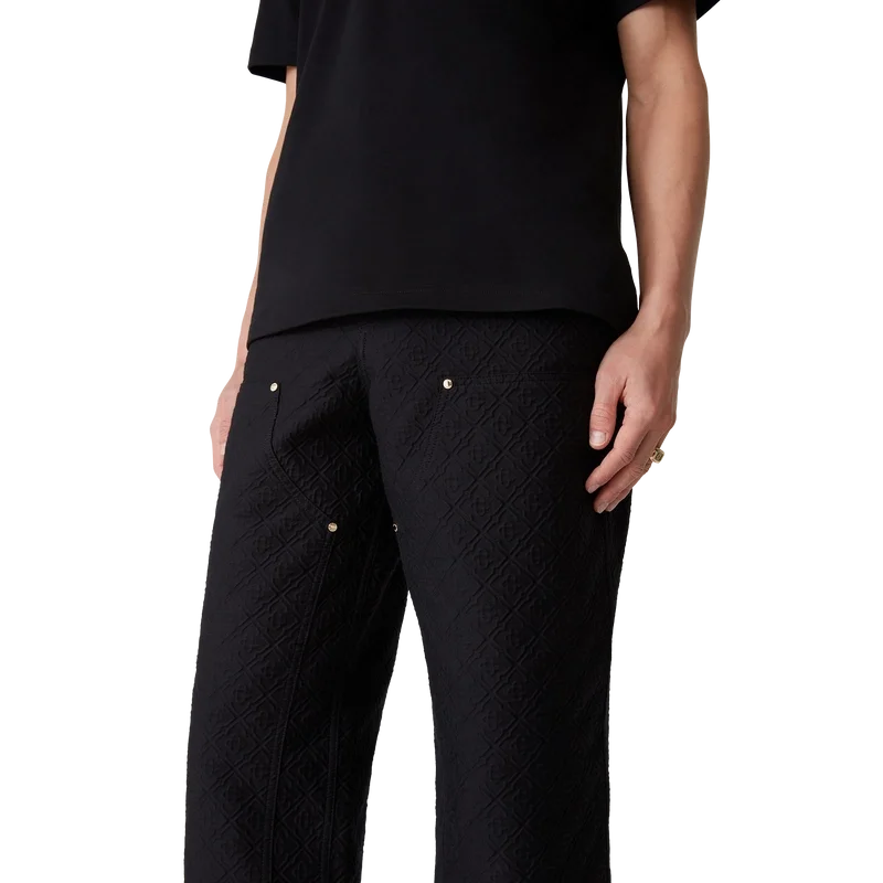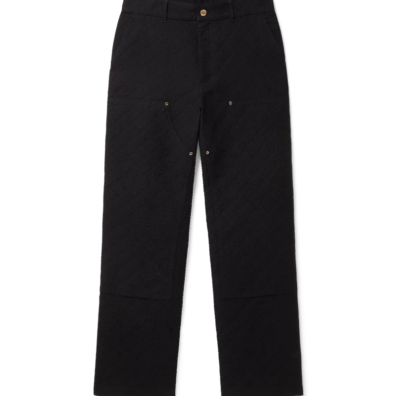 Jacquard-cargobyxor har raka ben och är tillverkade av jacquardbomullstyg med husets signaturmönster, Diamond Monogram. De har paneler på låren, guldpläterade detaljer, snedställda fickor, påsydda bakfickor, dragkedja och hällor.