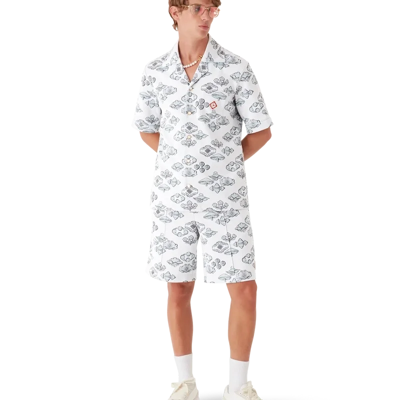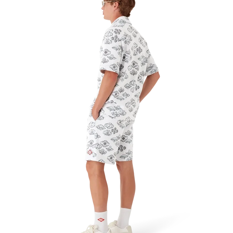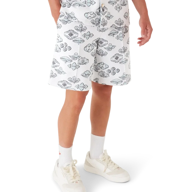 Jacquardmönstrade träningsshorts i klassisk design med husets signaturdiamantlogo och konstverk inspirerade av naturen och tennis i ett diamantmönster. Kompletterade med elastisk midja, dragsko, snedställda fickor med pipingdetaljer, en påsydd bakficka, veckade sömmar framtill och pipingdetaljer på sidorna.