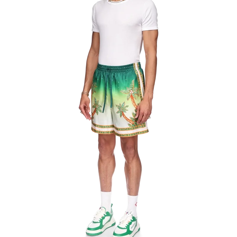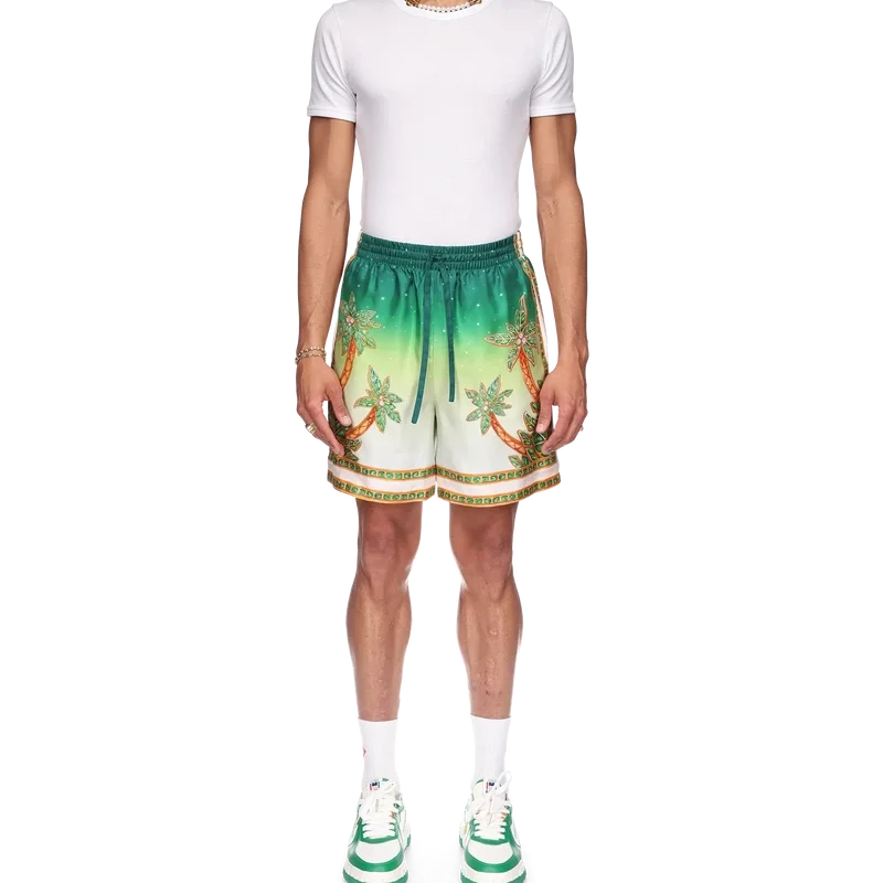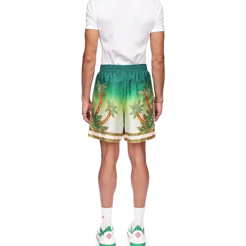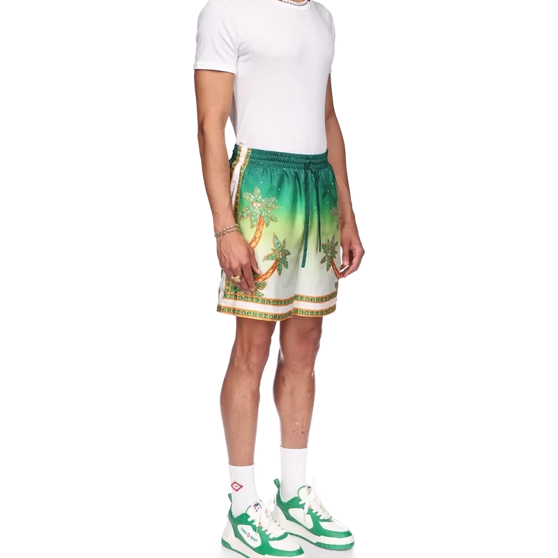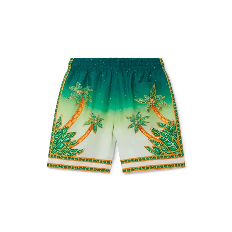 Joyaux D’afrique-silkeshortsen är ett heltäckande tryckt plagg med säsongsbetonade motiv som kombinerar naturreferenser från Nigeria och husets smyckesdesign med vårt traditionella tennisklubbsmönster. Tillverkade i silketwill med elastisk midja, dragsko, sidfickor och en bakficka.