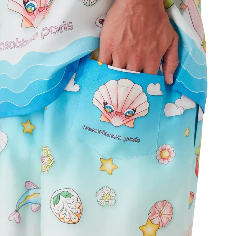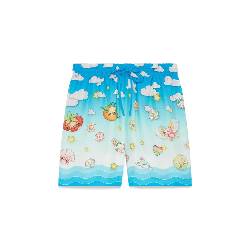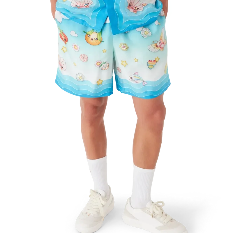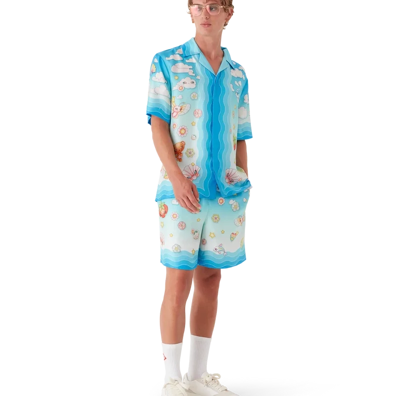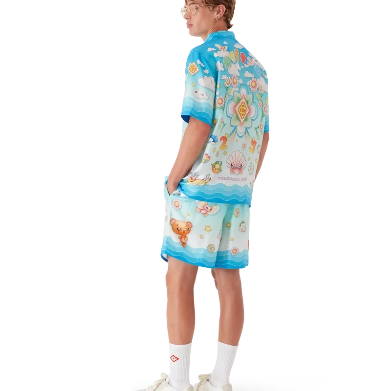 Kawaii-motivsshorts i silkestwill har ett heltäckande tryck med kawaii-element. Detta är en kawaii-version av vårt Tennis Club-mönster, med kawaii-elementen i mitten. Färgpaletten för denna skjorta består huvudsakligen av pastellfärger.