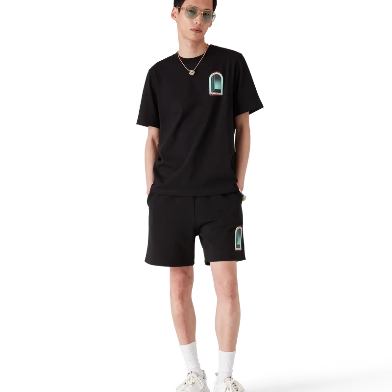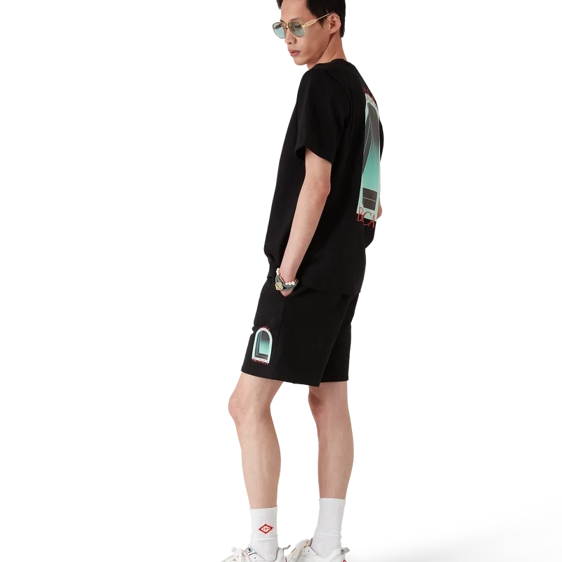 L’arche-sweatshorts med tryck är ett sportplagg tillverkat av ekologiskt bomullstyg och pryds av husets säsongsbetonade konstverk som tolkats om för denna säsong. Kompletteras med resår i midjan, dragsko med gulddetaljer, fickor i sidorna och en påsydd ficka bak.