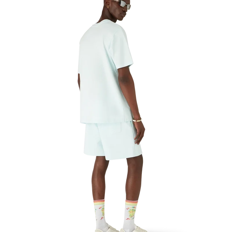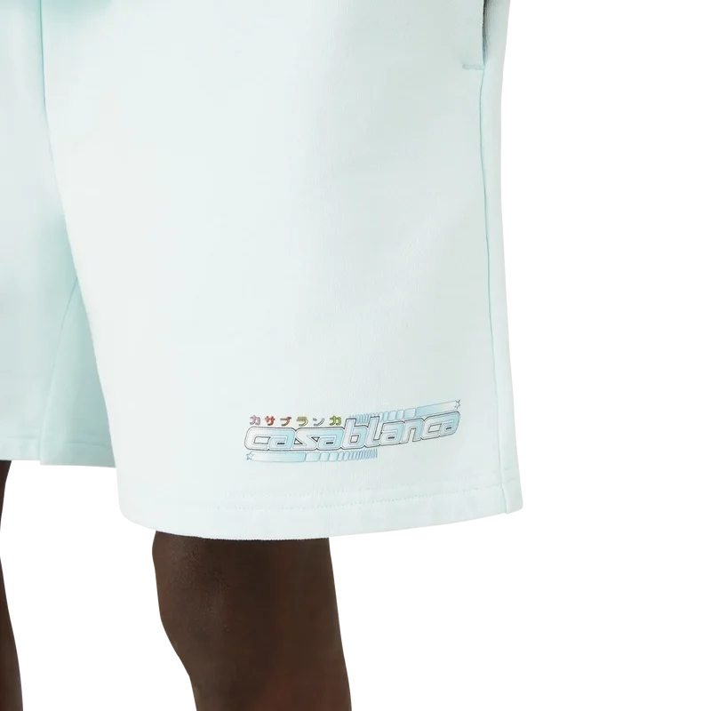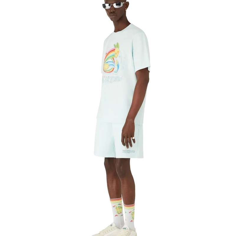 Manga Tennis Ball Sweatshorts är ett sportplagg tillverkat av ekologisk bomull med säsongsbetonade motiv som utforskar kawaii- och mangavärlden. Designen leker med Casablancas ikonografi och använder tennisbollar som apelsiner för en rolig twist. Plagget avslutas med en klassisk rund halsringning.