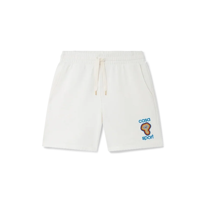 Mind Vibrations off-white broderade sweatshorts har ett säsongsbetonat motiv inspirerat av jordens läkande kraft och naturens förmåga att läka själen. Tillverkade av 100 % ekologisk bomull. Shortsen slutar ovanför knäet och har guldkantade dragskor samt sidfickor.