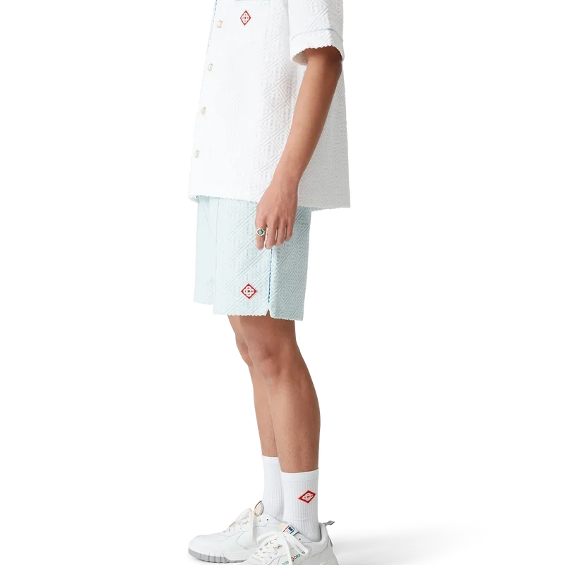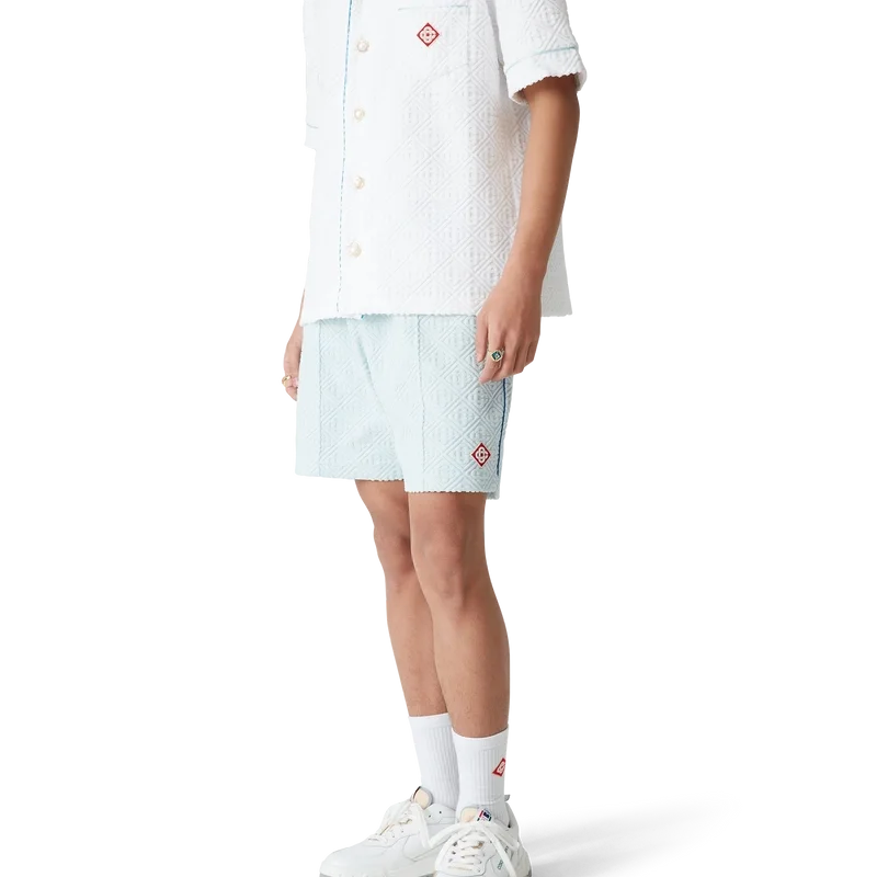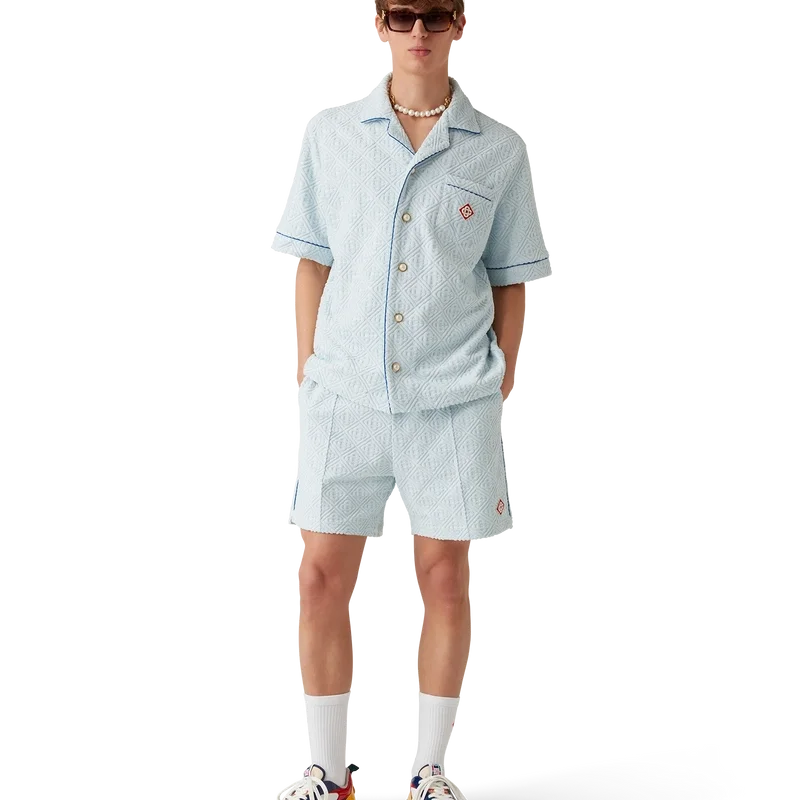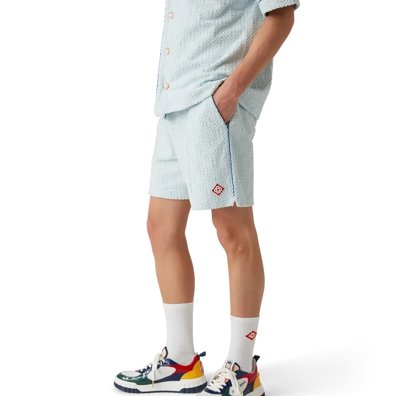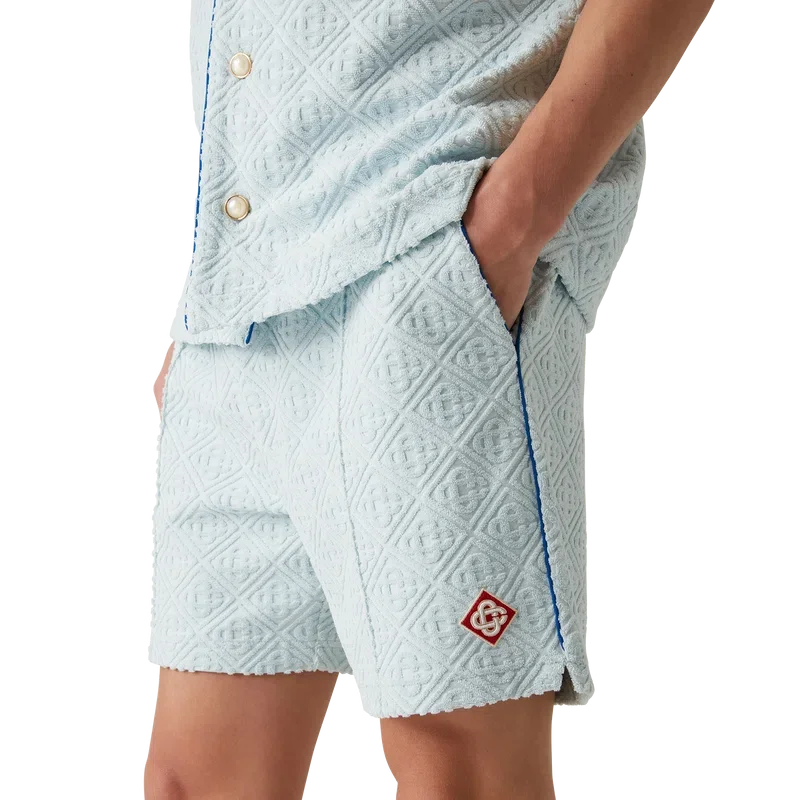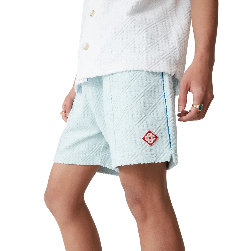 Monogram-frotteshortsen är tillverkade av ett frottetyg i bomullsblandning med monogram och har husets signaturdiamantlogo. De kompletteras med snedställda framfickor, en påsydd bakficka, dragsko och veckade sömmar.