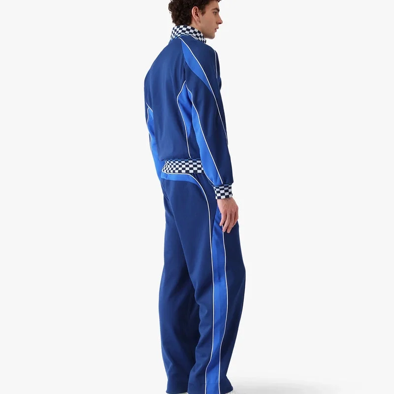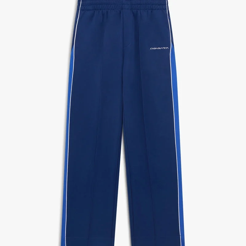 Navy Cyber Tricot-träningsbyxorna har en rak passform och ett raffinerat design som förkroppsligar märkets sofistikerade syn på sportkläder. De har elastisk midja, dragsko, snedställda sidfickor, blå randiga detaljer längs sidorna, veckade sömmar framtill, en bakficka och märkets Casablanca-logotyp.
