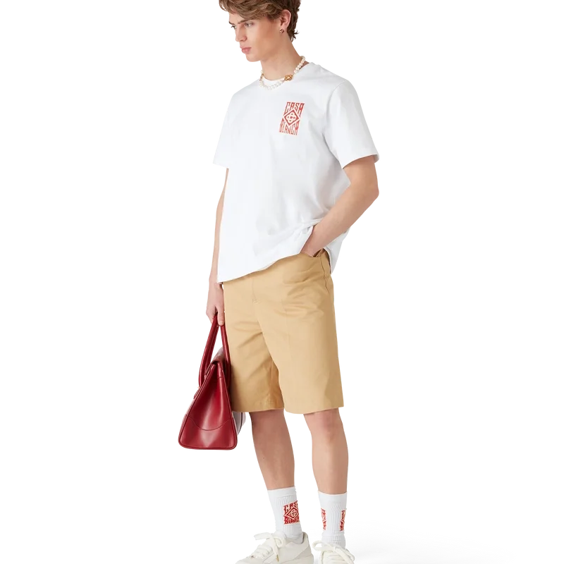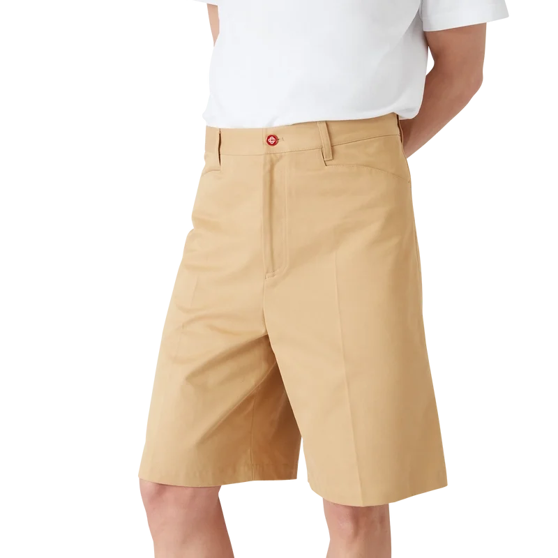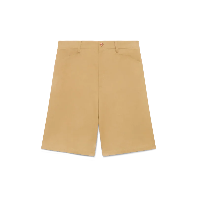 De plisserade bomullsshortsen har en avslappnad design och är tillverkade av bomullstyg med bomullsfoder. De har bälteshällor, dragkedja, framfickor och bakfickor med kantband samt knäppning med emaljerade knappar med Cc-logotyp och guldkant.