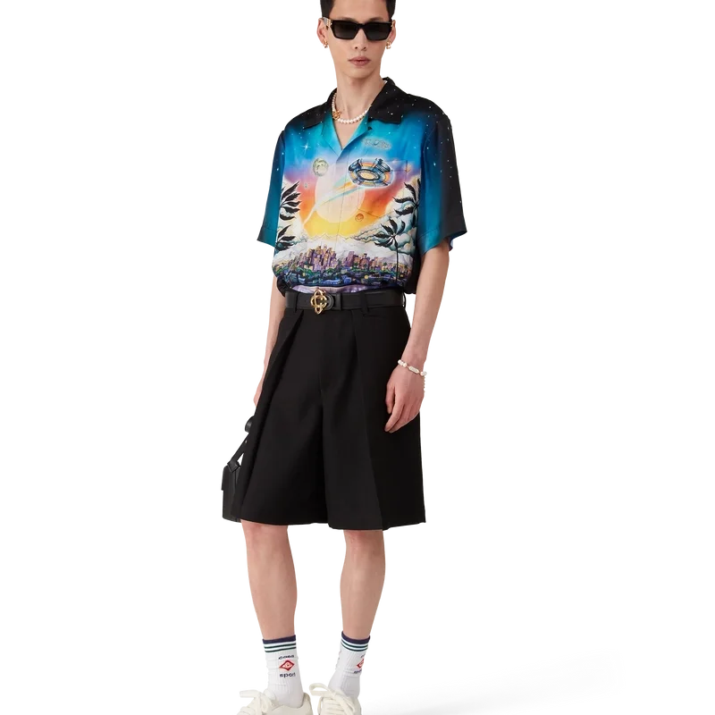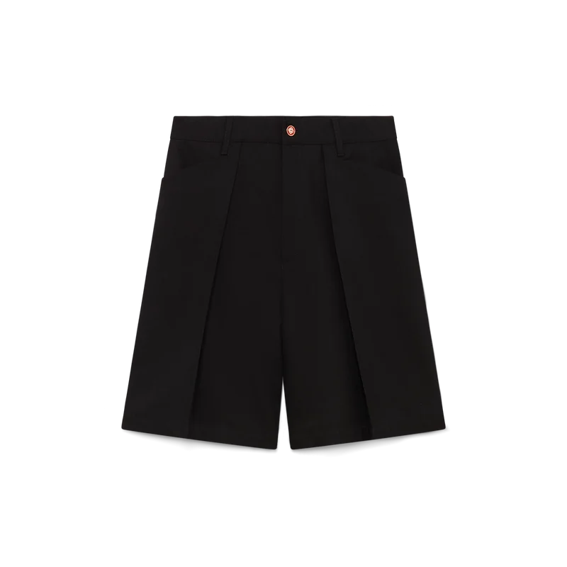 De skräddarsydda plisserade Shortsen i ull har en avslappnad design och är tillverkade av ulltyg med foder i bomullsblandning. De har bälteshällor, veck, dragkedja, framfickor och bakfickor med kantband samt emaljknappar med sammanflätat CC-logo och guldkant – designade för en avslappnad passform.