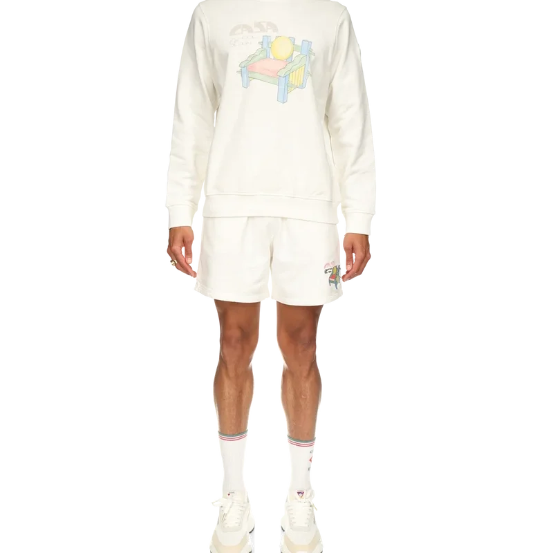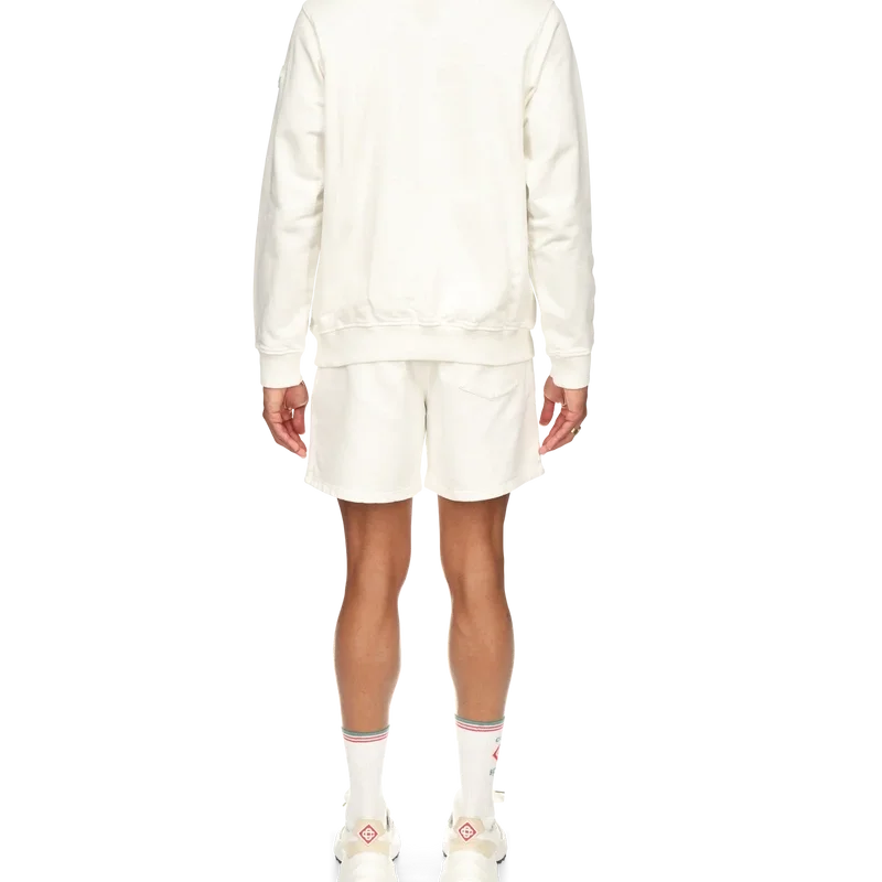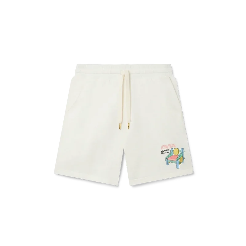 En viktig del av Casablanca Paris-stilen, de vita unisex-shortsen har vårt exklusiva dubbla varumärkeslogo i kontrastbroderi. Tillverkade av 100 % ekologisk bomull, shortsen slutar ovanför knät och är försedda med dragsko med guldspetsar och sidfickor.