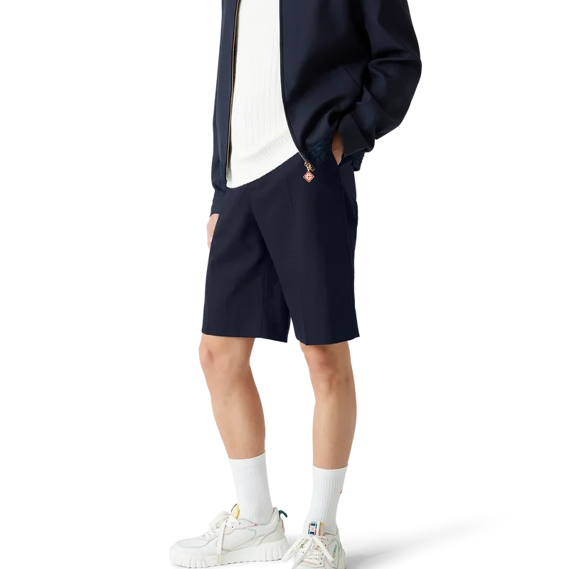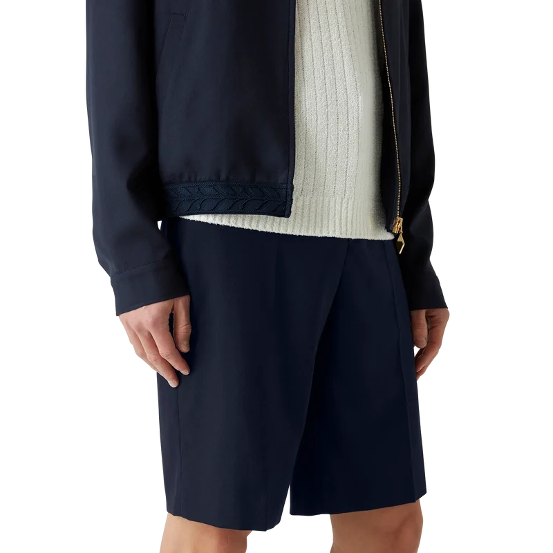 Dessa skräddarsydda shorts i ull är tillverkade av tyg av nyull och har ett foder i bomullsblandning. De är försedda med hällor, dragkedja, snedställda sidfickor, en bakficka med kant och uppvikta benslut.