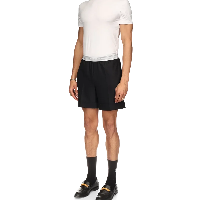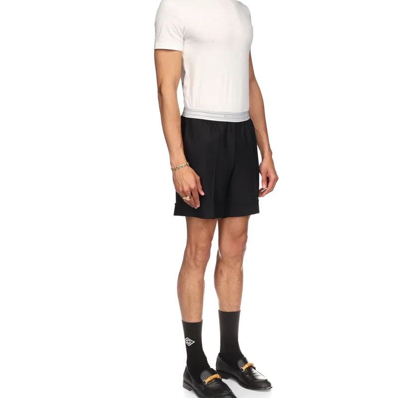 Sports Tailoring Shorts är ett skräddarsytt par shorts tillverkade i ett ullblandat tyg med en elastisk midjeresår med Casablanca-logotypen. De har snedställda framfickor, en imiterad öppning fram, en bakficka med kantband och uppvikt fåll.