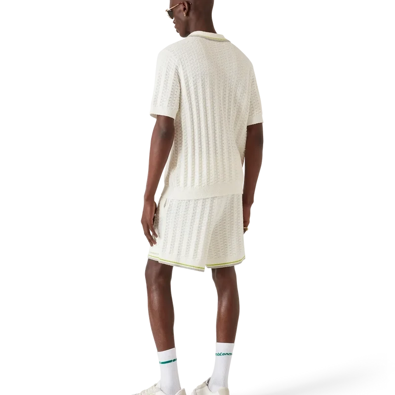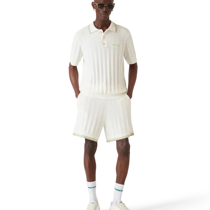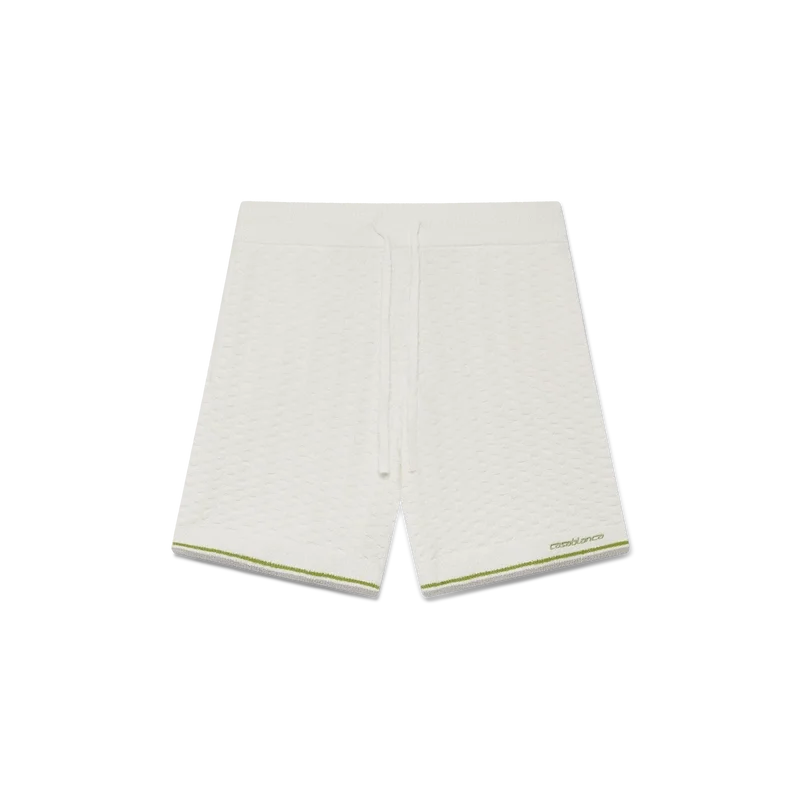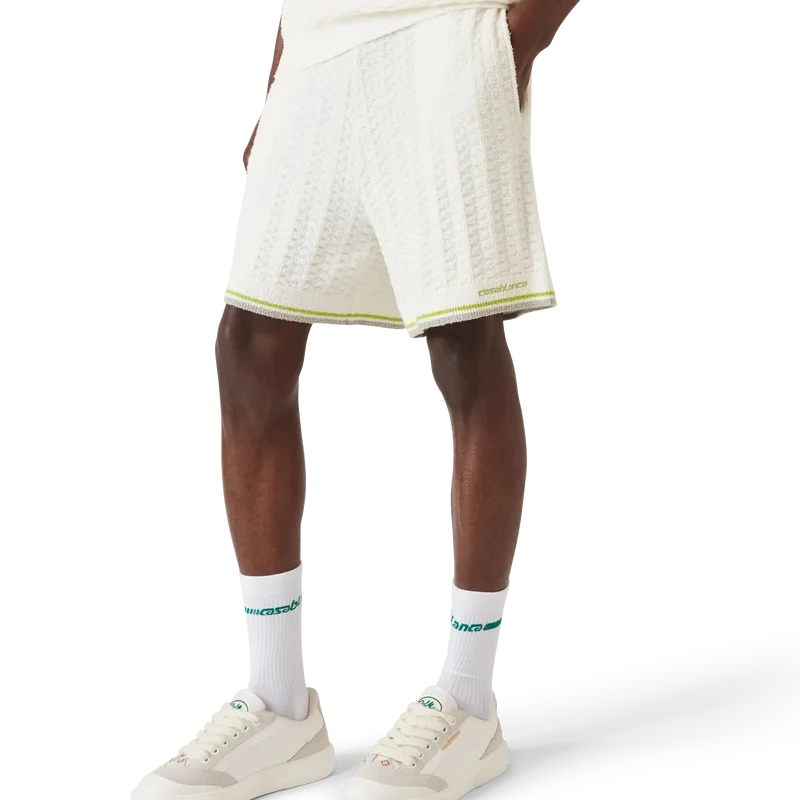 Tennis Boucle-shortsen har en strukturerad design med husets Casablanca-logotyp. Kompletterade med husets signatur Casablanca-logotyp, en elastisk midjeresår, dragsko och ribbad fåll med randiga kantdetaljer.