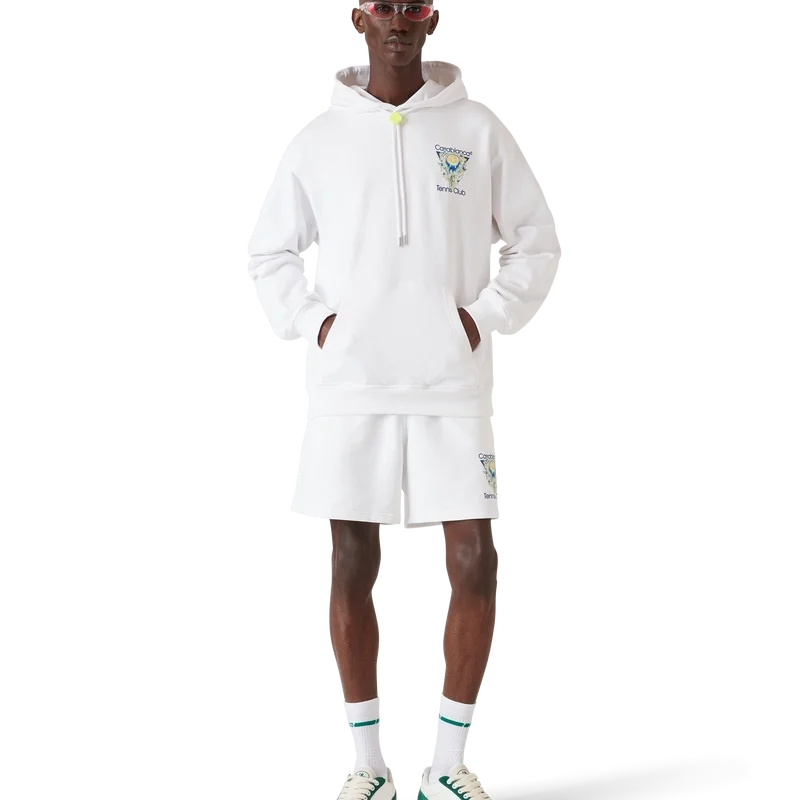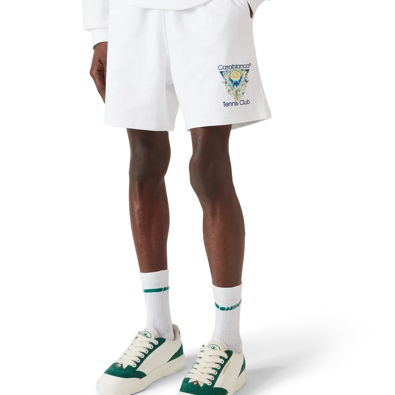 Tennis Club Icon-sweatshorts har en raffinerad design med husets karakteristiska tennisbollsmotiv i flygande position, vilket förkroppsligar de väsentliga principerna om kraft, hastighet och kontroll. Kompletteras med elastisk midja, dragsko, sidfickor, en påsydd ficka bak och veckade sömmar framtill.