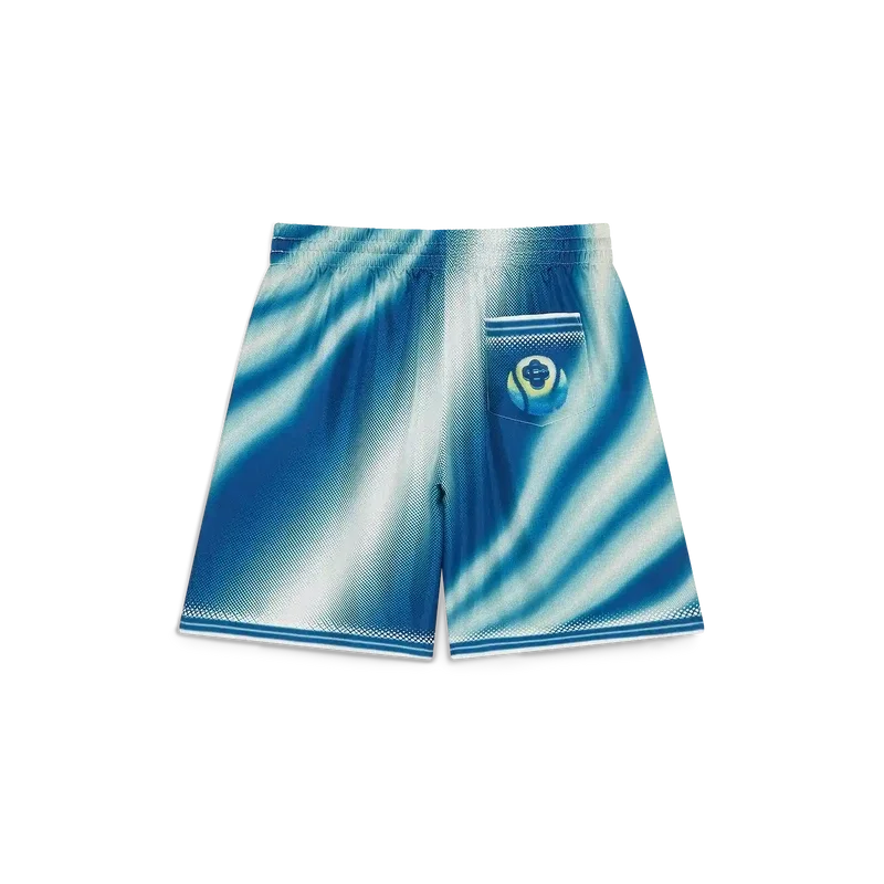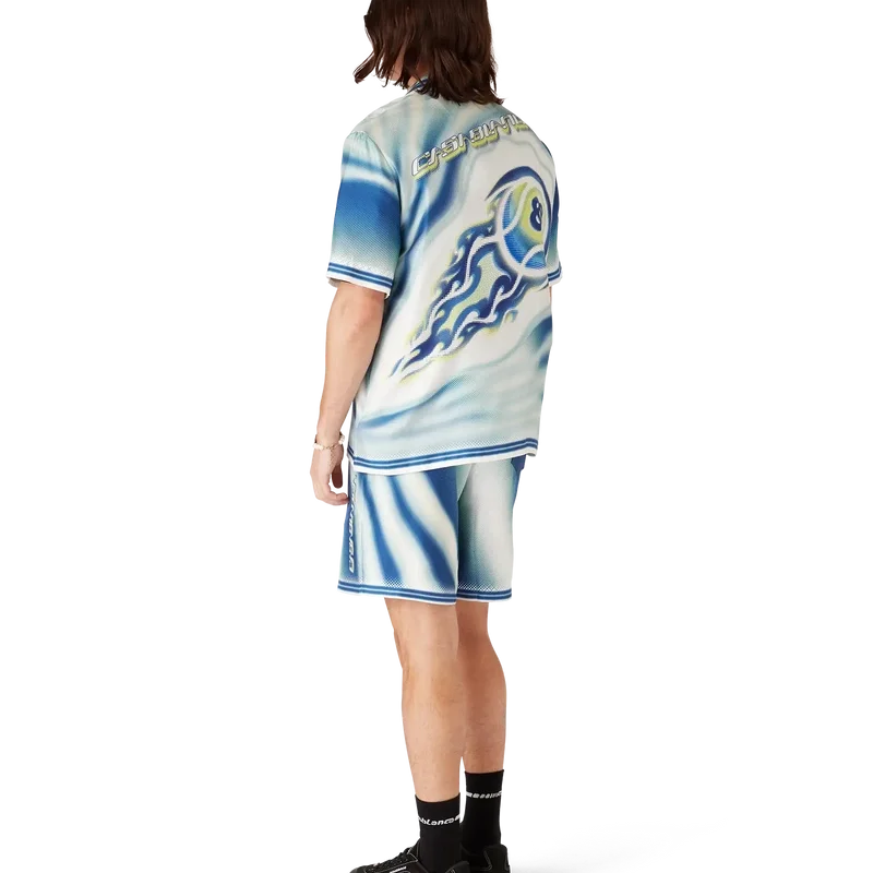 The Art of the Serve Silk Shorts har ett heltäckande tryck med husets karakteristiska motiv av en tennisboll i luften, vilket speglar den grundläggande balansen mellan kraft, hastighet och kontroll. Kompletteras med elastisk midja, dragsko, sidofickor i sömmarna, en påsydd ficka bak, randig fåll och Casablanca-logotyp.