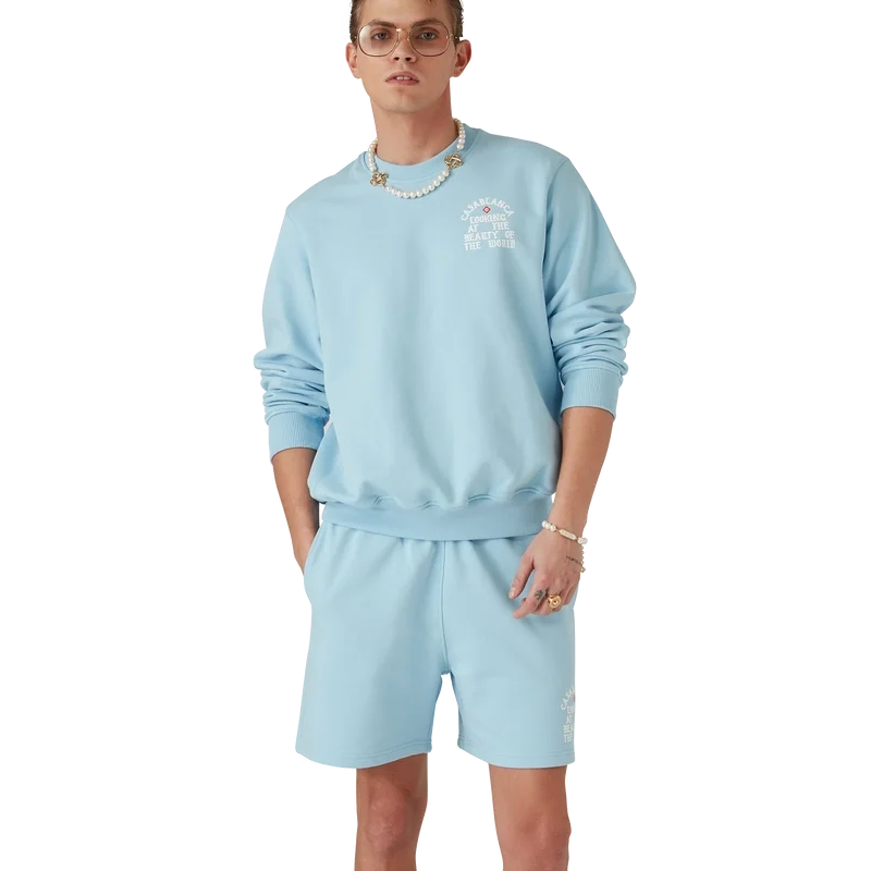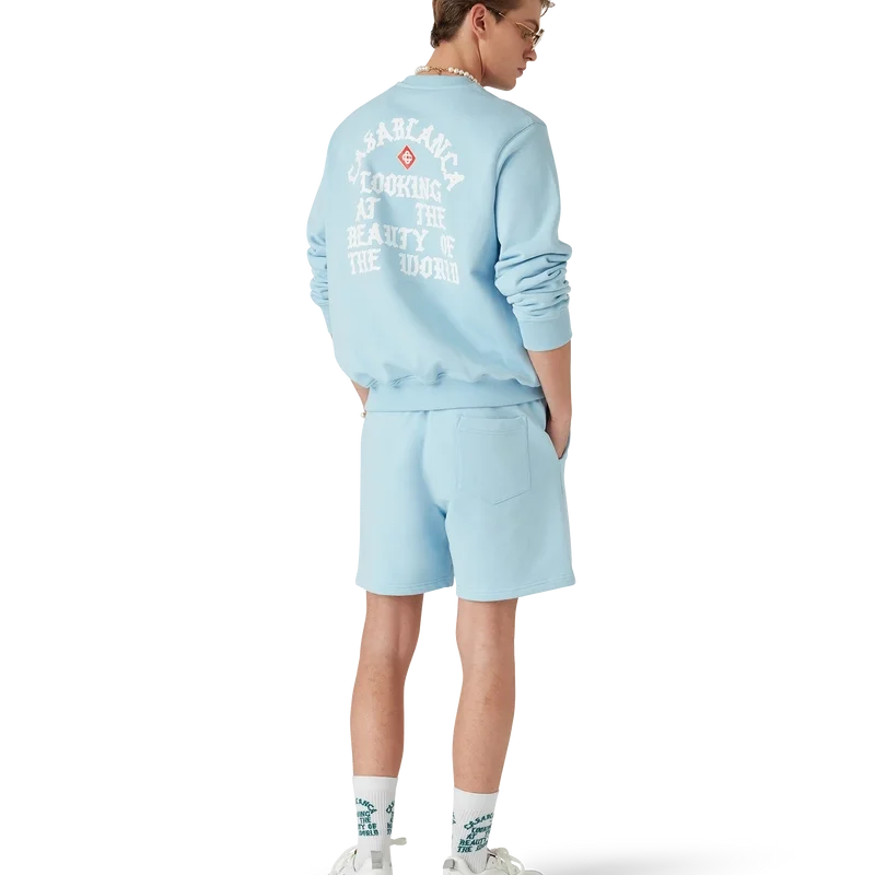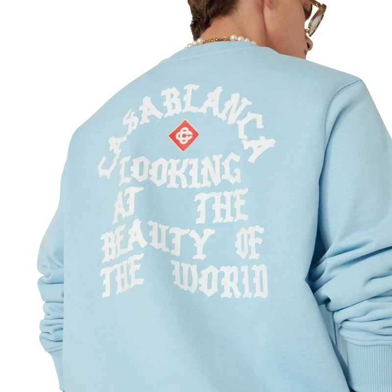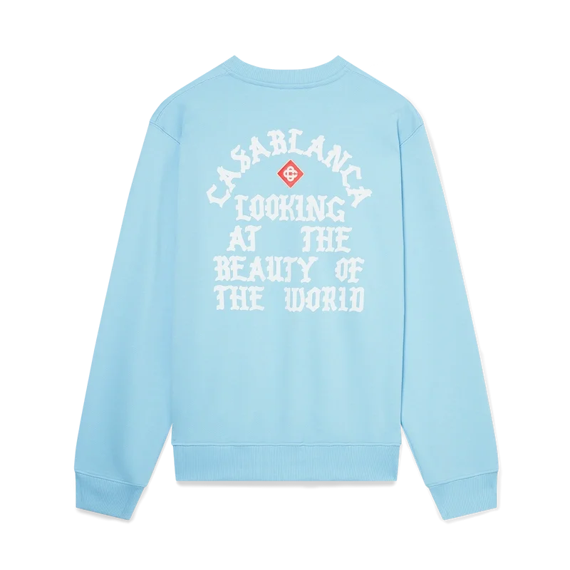 Beauty of the World-tröjan är en långärmad tröja med tryck som visar husets signaturdiamantlogotyp och Casablancas varumärkesmotto i gotisk typografi inspirerad av gatukulturen. Komplett med klassisk rund hals, ribbade muddar och nederkant.