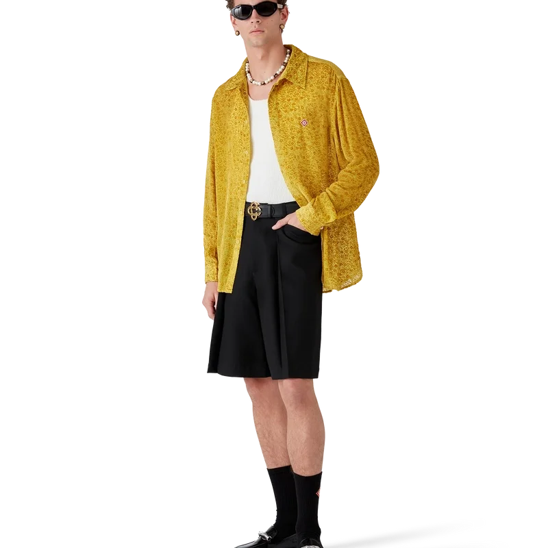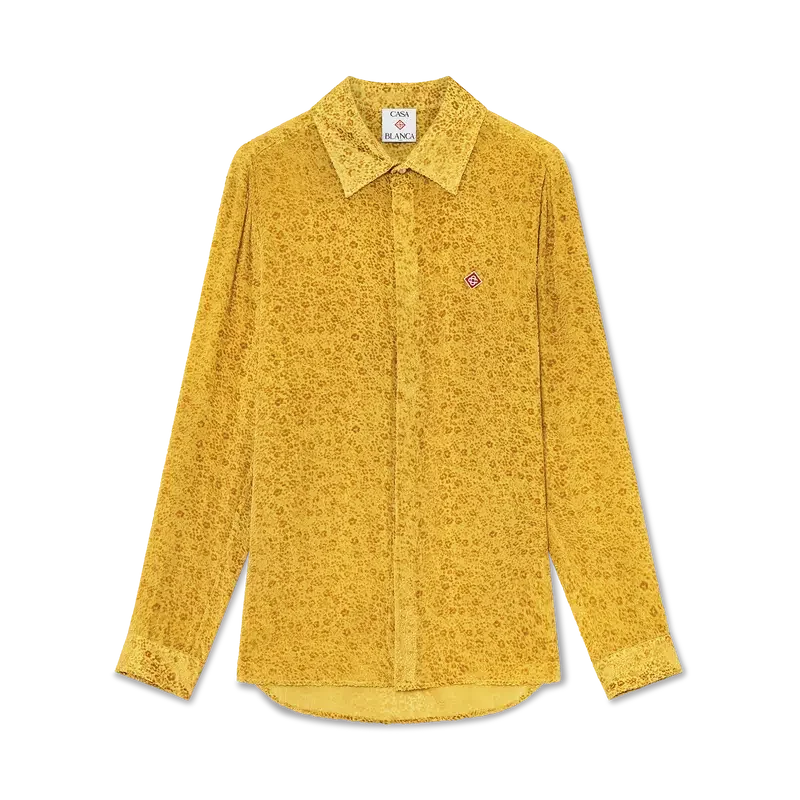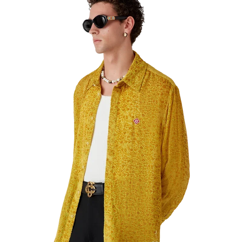 Den blommiga Devora-silkeskjortan är en långärmad, skräddarsydd modell tillverkad av Devora-silke. Den har spetskrage, dold knäppning, Corozo-knappar med sammanlänkat CC-logo, ett signaturdiamantlogo samt emaljknappar med guldkant vid krage och manschetter.