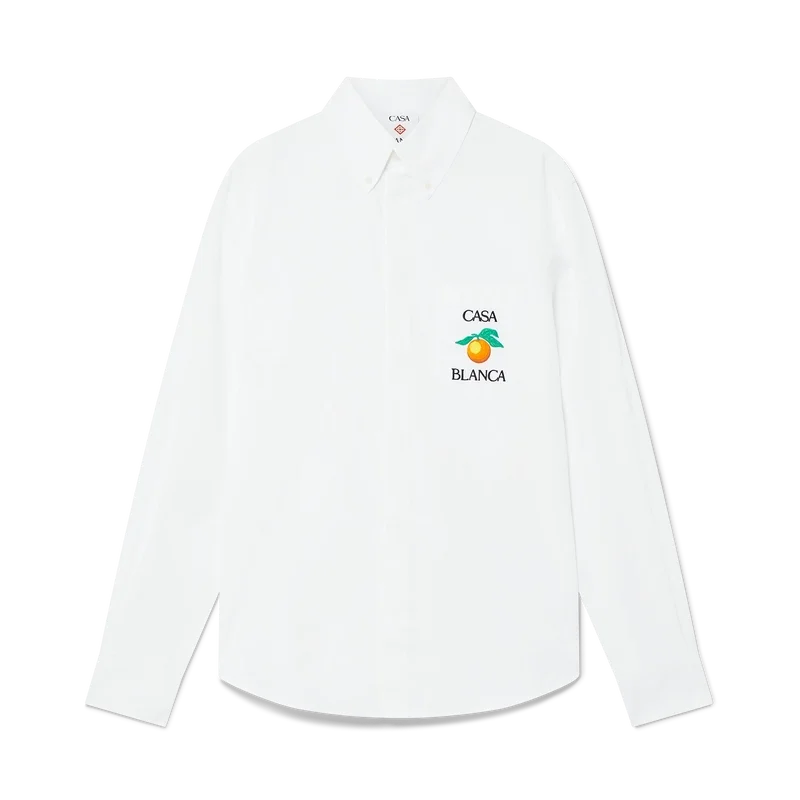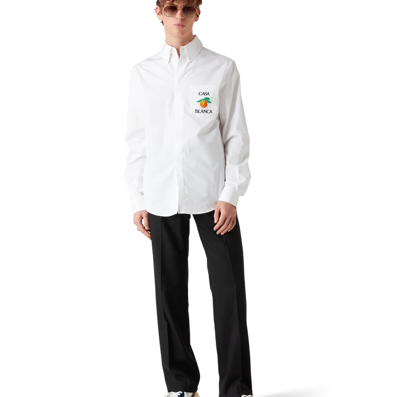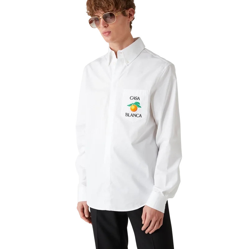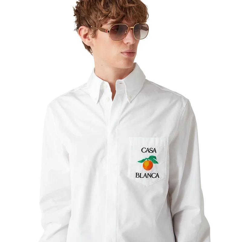 Den broderade orange oxfordskjortan är en långärmad modell, tillverkad av bomullstyg och prydd med broderad orange – ett av husets designelement – samt texten Casablanca. Avslutas med en bröstficka, en knäppt spetsig krage, dold knäppning fram och Corozo-knappar med sammanflätat Cc-logo.