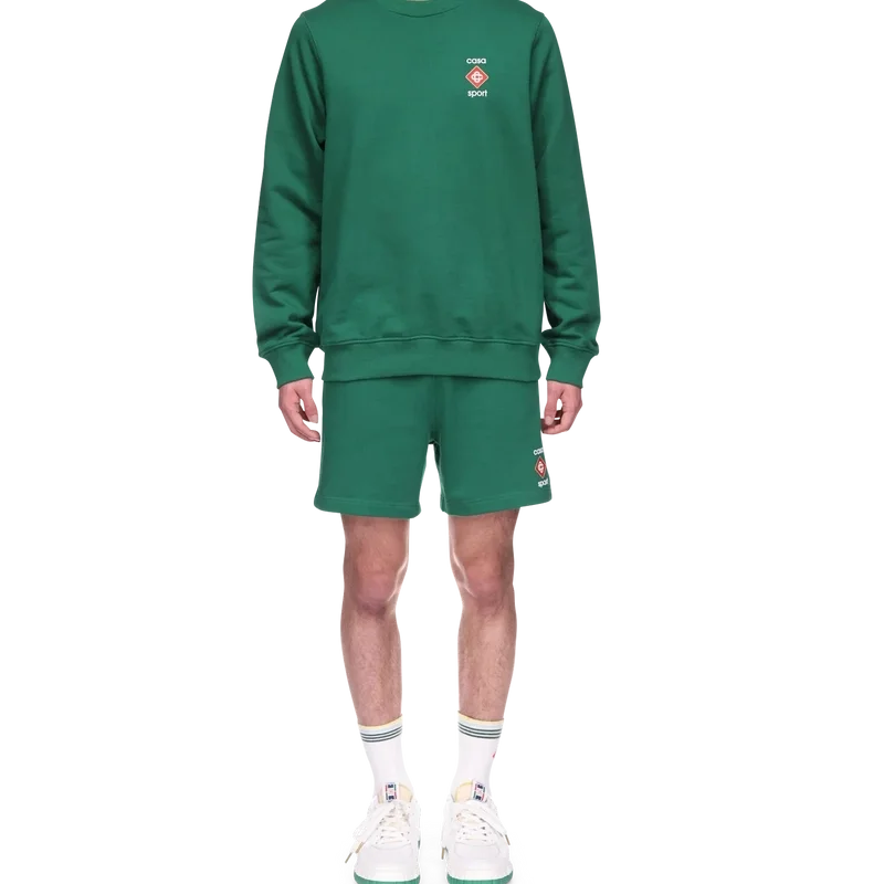 Den gröna unisex-tröjan med Casa Sport-logotypen är screentryckt och ger en sportig tolkning av Casablanca Paris-logotypen, som sedan är tryckt över vänster axel. Modellen är tillverkad av ekologisk bomull och är en klassisk långärmad tröja med rund hals som har designats för en avslappnad passform.