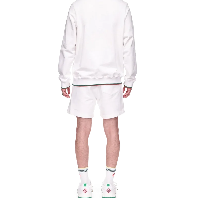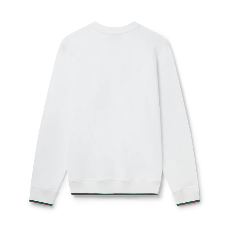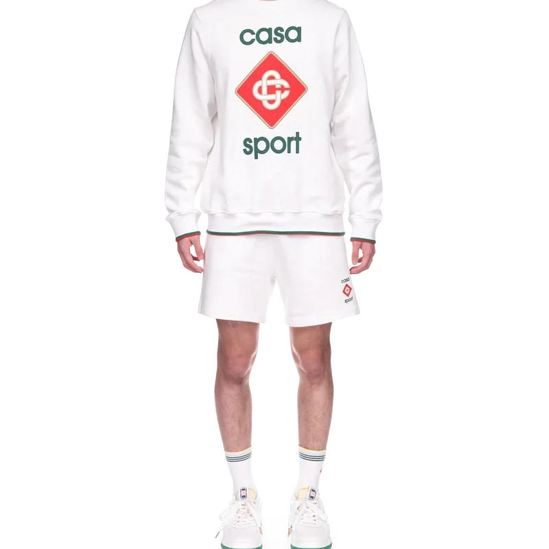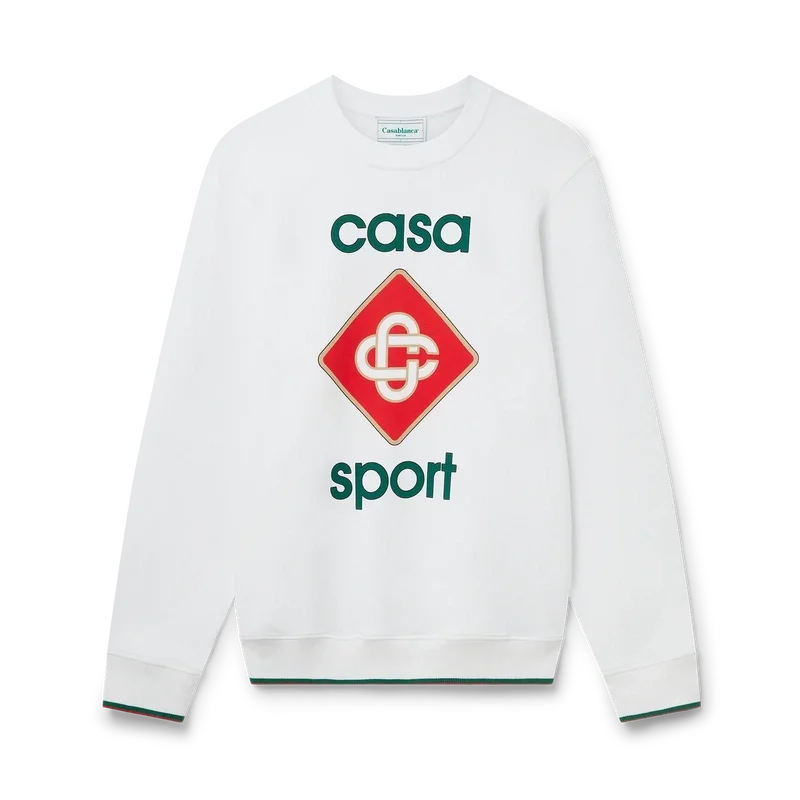 Den vita unisex-tröjan med Casa Sport-logotypen i screentryck är en sportig tolkning av Casablanca Paris-logotypen, som pryder bröstet. Modellen är tillverkad av ekologisk bomull och har en klassisk långärmad rund hals samt en avslappnad passform.