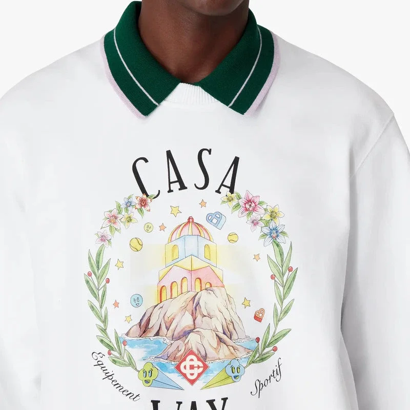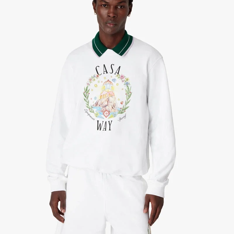 Casa Way-tröjan med rund hals är en elegant långärmad modell med ett tryck som beskriver den utopiska visionen av Ibiza som en destination för en nästan religiös upptäcktsresa genom dess mångsidiga musiklandskap och som en mötesplats och plats för djupa upplevelser. Kompletterad med en klassisk rund hals samt ribbade muddar och nederkant.