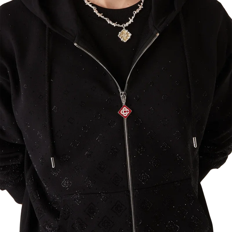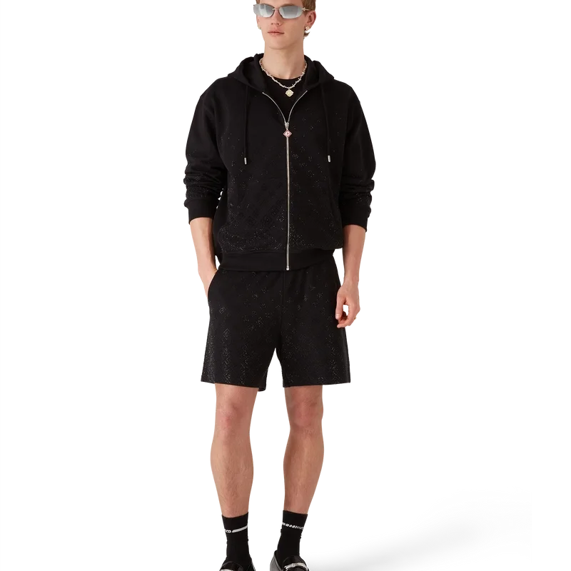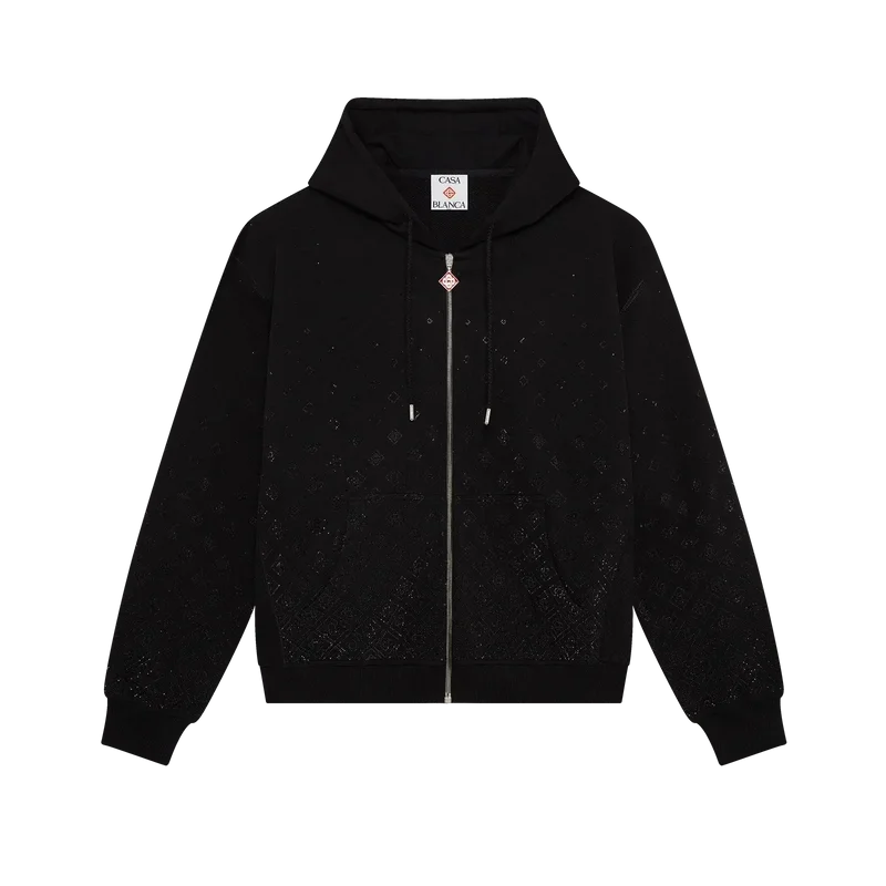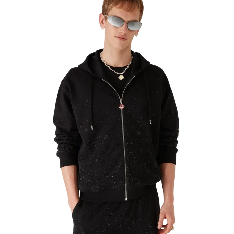 Crystal Monogram långärmad tröja är en raffinerad, exklusiv jerseydesign med husets Degrade Monogram tillverkat av kristaller. Kompletterad med huva och dragkedja med husets signaturDiamond Monogram på dragkedjetappen, påsydda fickor samt ribbade muddar och nederkant, som ger komfort samtidigt som husets sport- och fritidsestetik bibehålls.