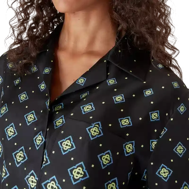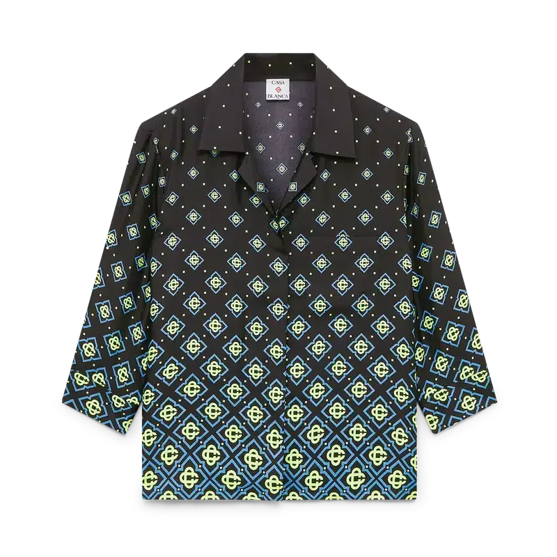 Den långärmade skjortan med Degrade Monogram har en raffinerad design med husets signaturmönster i svart monogram. Den kompletteras med en kubansk krage, knäppning, bröstficka, Corozo-knappar med sammanflätade CC-logotyper och husets signaturknappar i emalj med guldkant på manschetterna.<!–