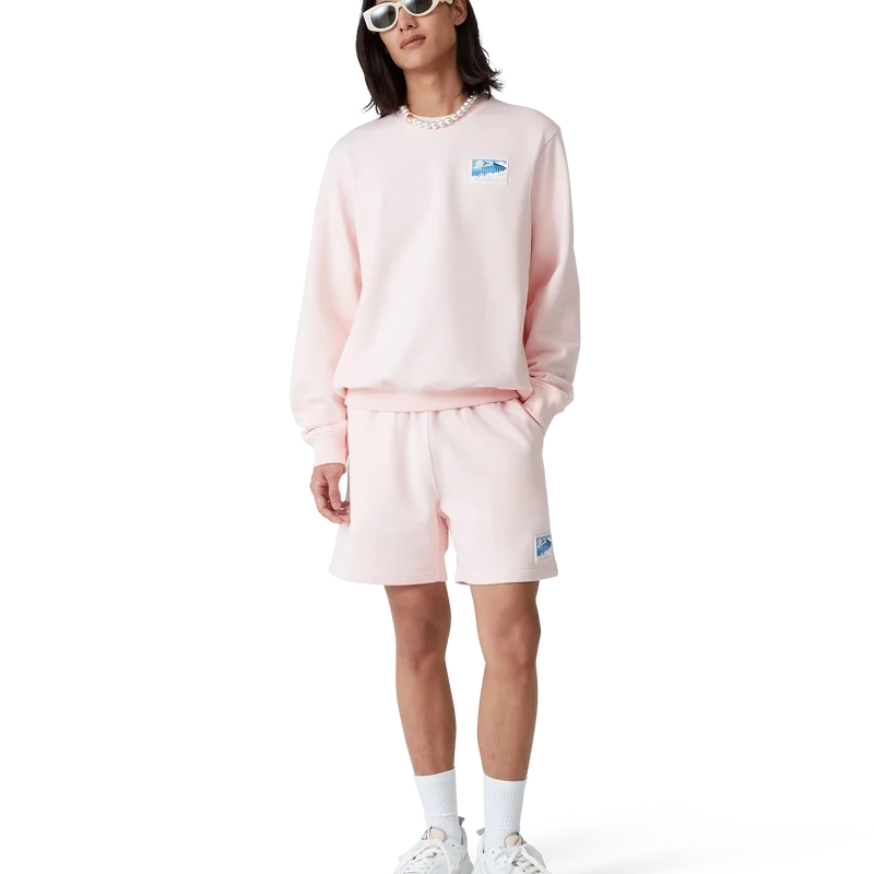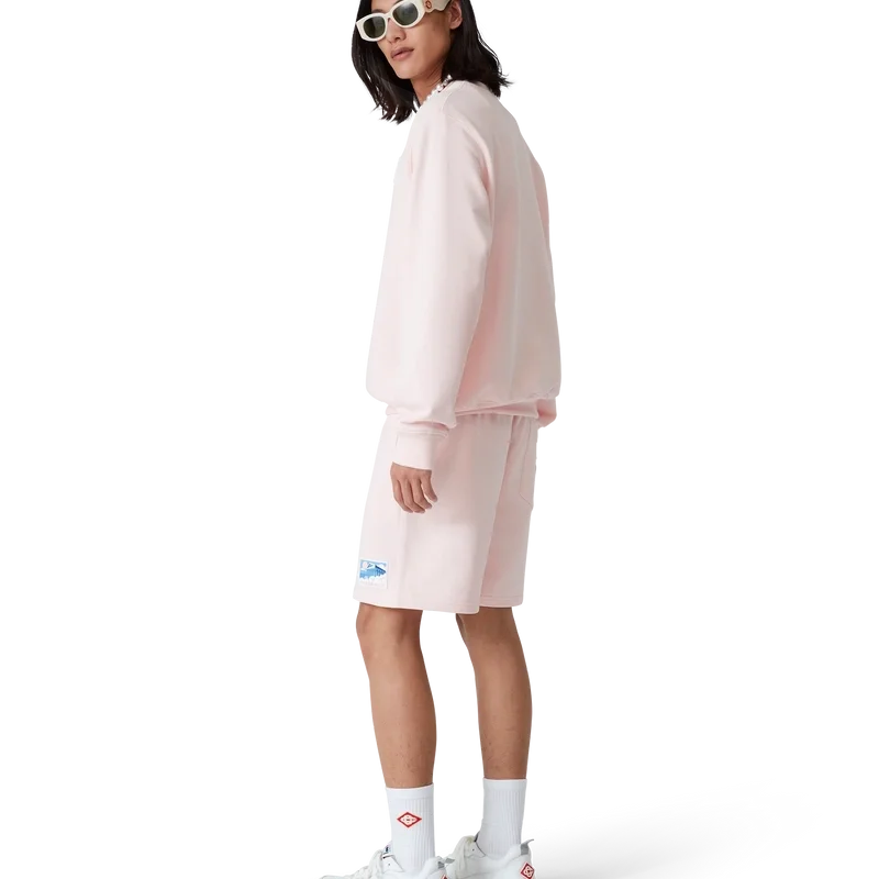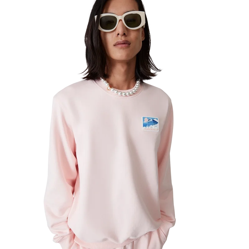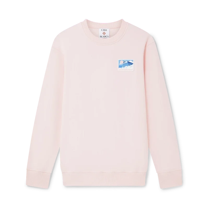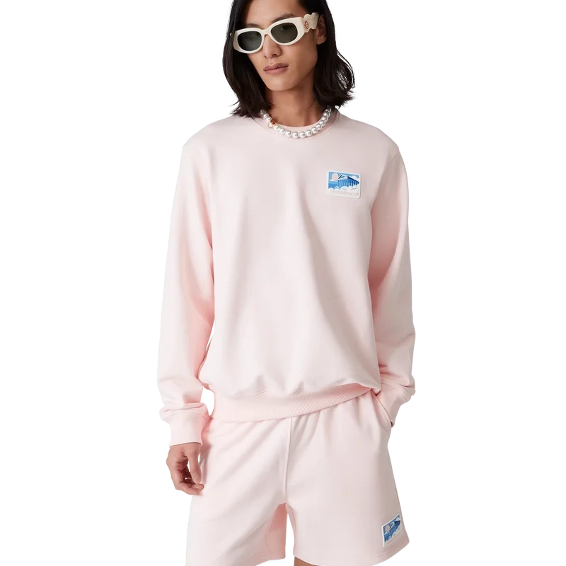 Greek Temple-tröjan är en klassisk långärmad modell i märkets signaturrosa nyans. Den har en påsydd logotyp, ribbade muddar, krage, nederkant och en klassisk rund halsringning.