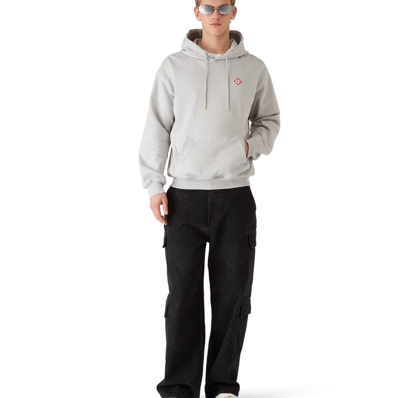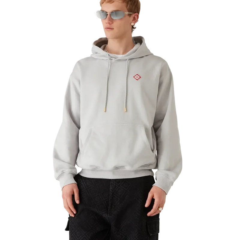 Hoodien med Casa-logotypen har en raffinerad apras-sport-silhuett med husets signaturdiamantlogotyp. Kompletterad med känguruficka, ribbade muddar och nederkant samt dragsko med guldspetsar.