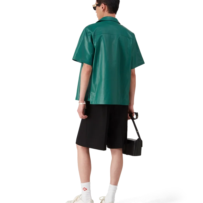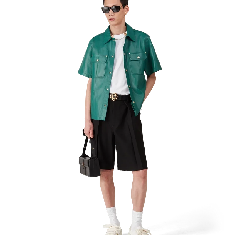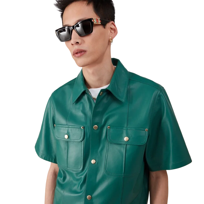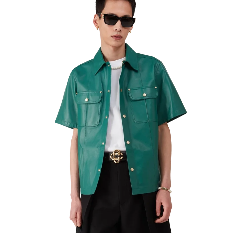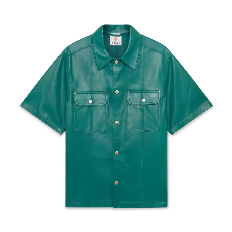 Läderskjortan är en kortärmad modell tillverkad av lammskinn.