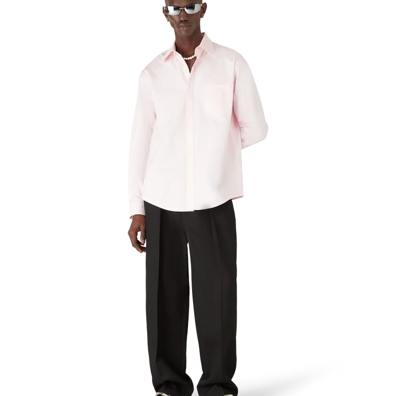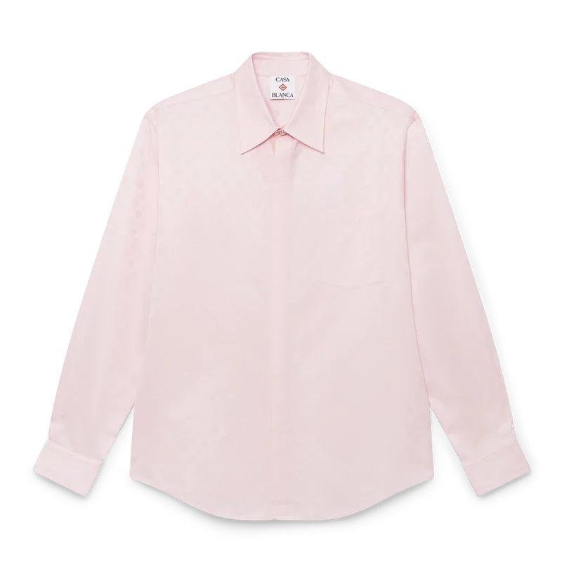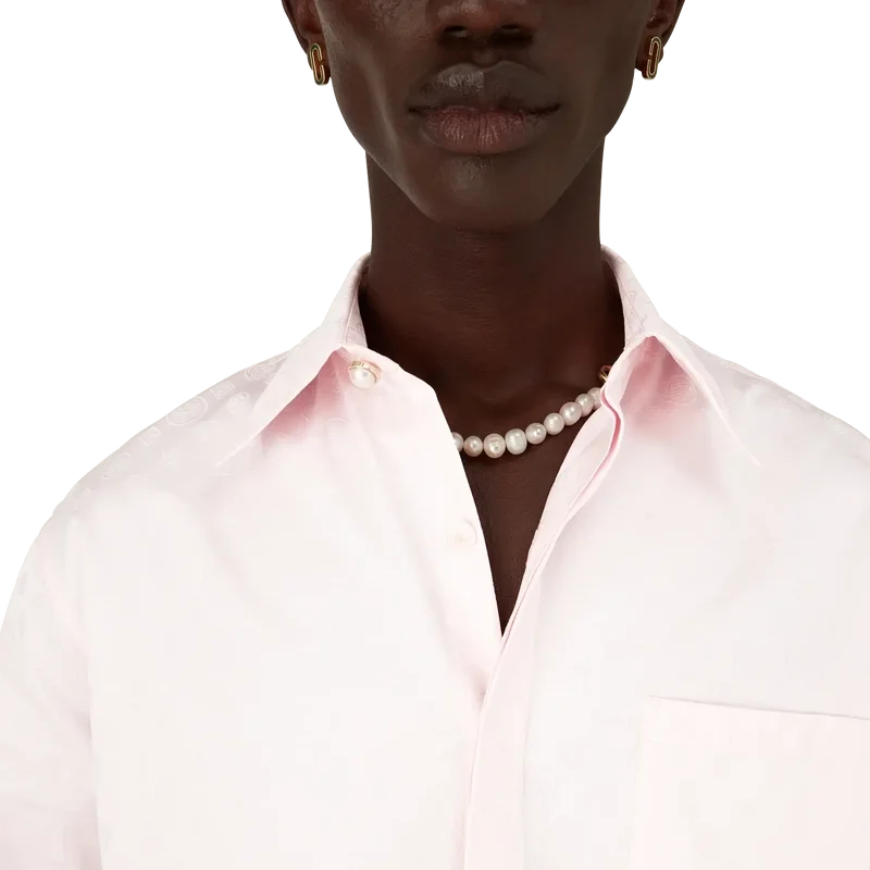 Den långärmade bomullsskjortan med monogram är en klassisk design med husets Honeydew-logotyp i mönster. Detta mönster skiljer sig från våra andra monogram, eftersom det kombinerar unika former för att bilda ett sammanhängande mönster. Kompletterad med spetskrage, knäppning, signaturknappar med sammanflätade CC-logotyper i corozo, en bröstficka samt signaturknappar med guldkant och pärlor vid krage och manschetter.