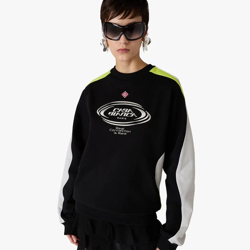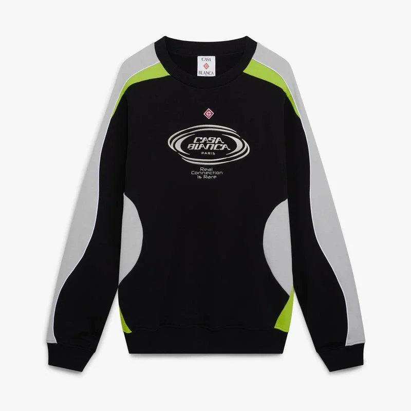 Den långärmade tröjan med färgblock är en raffinerad unisexmodell med färgblock och husets signaturdiamantlogo. Den har rund hals, pipingdetaljer, ribbade muddar och nederkant, husets Casablanca-logo och en avslappnad silhuett.