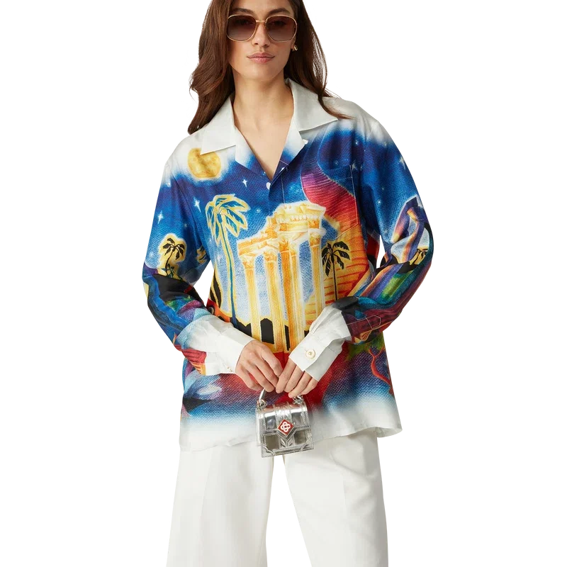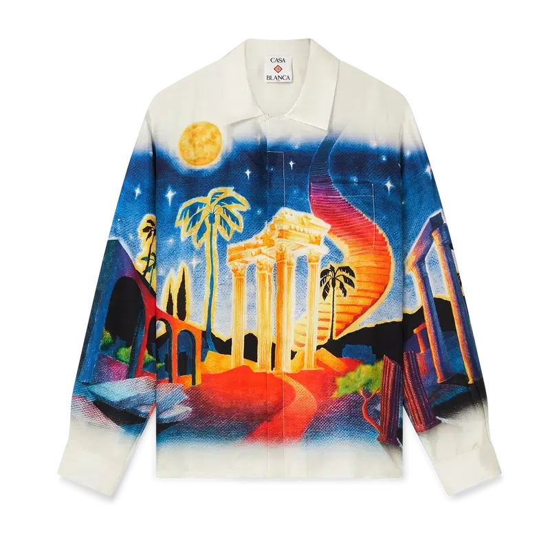Midnight Acropolis långärmad silkesskjorta