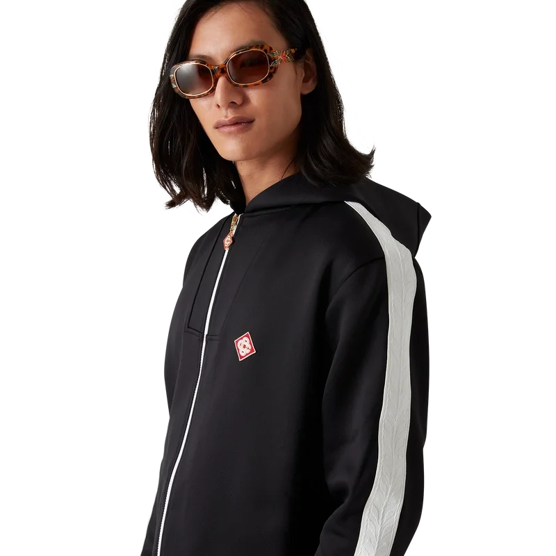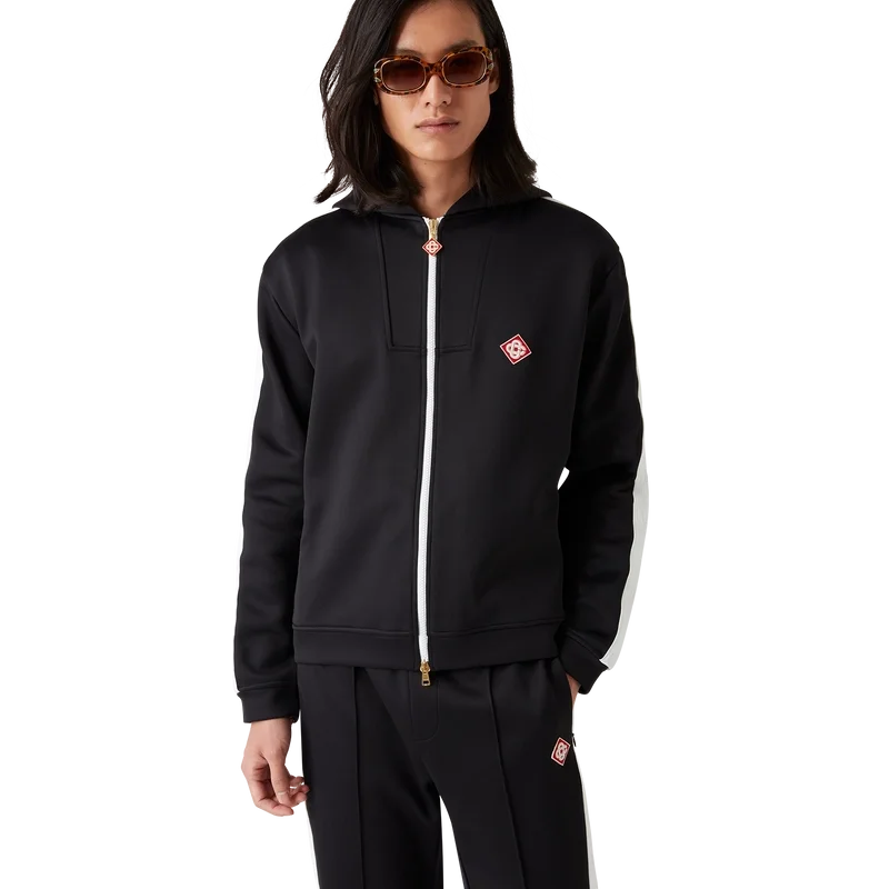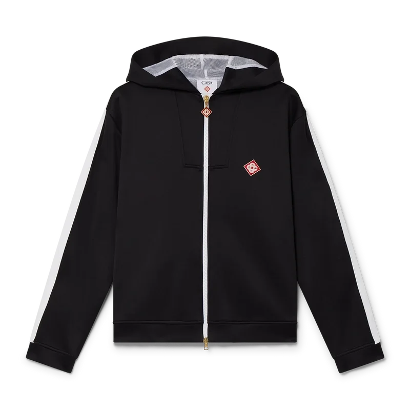 Scuba-tröjan med huva är en långärmad sporttröja tillverkad av scuba-jersey med randiga detaljer från axlarna och ner längs ärmarna. Den har huva, dragkedja fram, resår i ärmslut och nederkant samt vårt Diamond Monogram.
