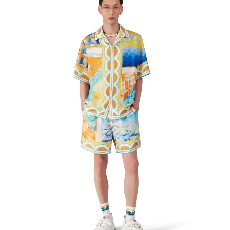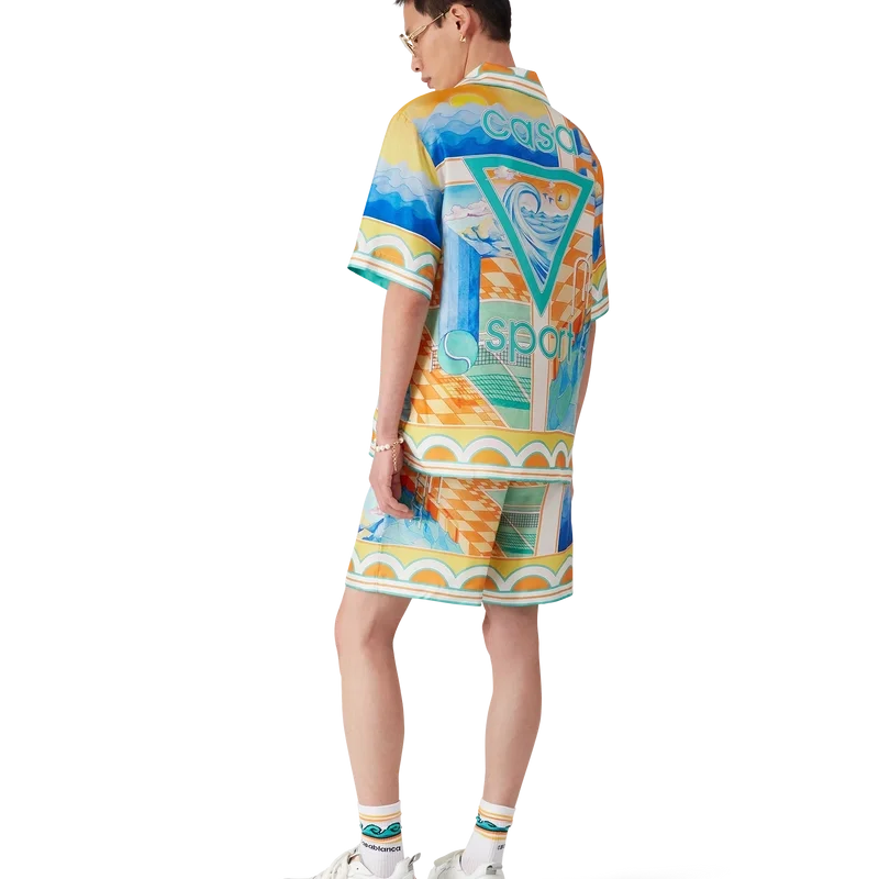 Surreal Pool kortärmad silkesskjorta i shorts