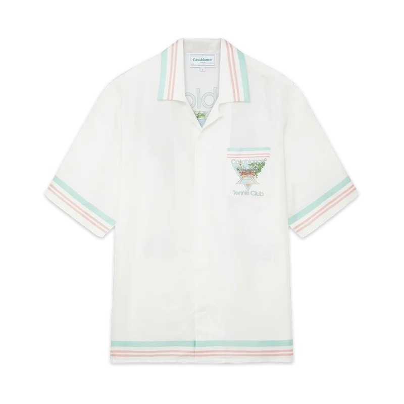 Tennis Club Icon Pastelle Silk Skjorta har husets signaturmotiv som tolkats på nytt för denna säsong. Den har en kubansk krage som är avsedd att bäras öppen med knäppning fram och har designats för en avslappnad passform.