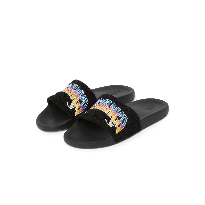 Gothic Terry Sliders är tillverkade av broderat frottétyg och har säsongens färgövergång på handritad typografi av Casablanca-logotypen, inspirerad av den gotiska typsnittet som används i tatueringar.