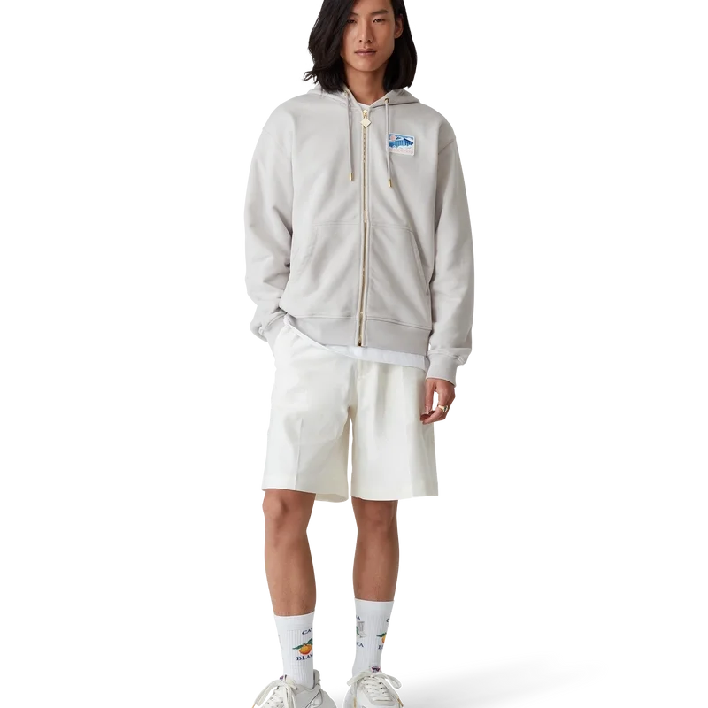 Överdrag i tonat kromlackerat läder, perforerad läderöverdel, kontrasterande snörning i mocka, Casablanca-diamantmärke i gummi på hälfliken, vävd Casa Sport-etikett på sidopanelen, vävd Atlantis-etikett på tungan, skulpterad EVA-vågformad mellansula, yttersula i gummi, guldfärgade snörspetsar