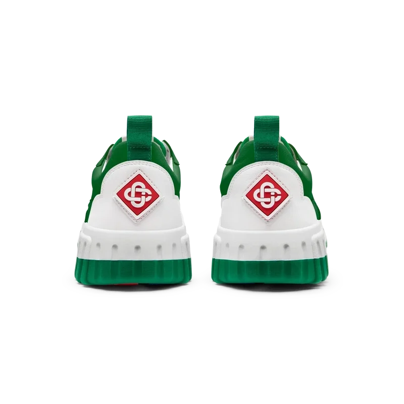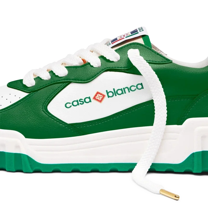Casablancas tydliga varumärkesprofil är genomgående, inklusive märkets signaturdiamantmotiv på hälen, silikonordmärke på sidopanelerna samt den vävda tungan och innersulan med tennisbanemotiv, vilket ger upphov till namnet, The Court.