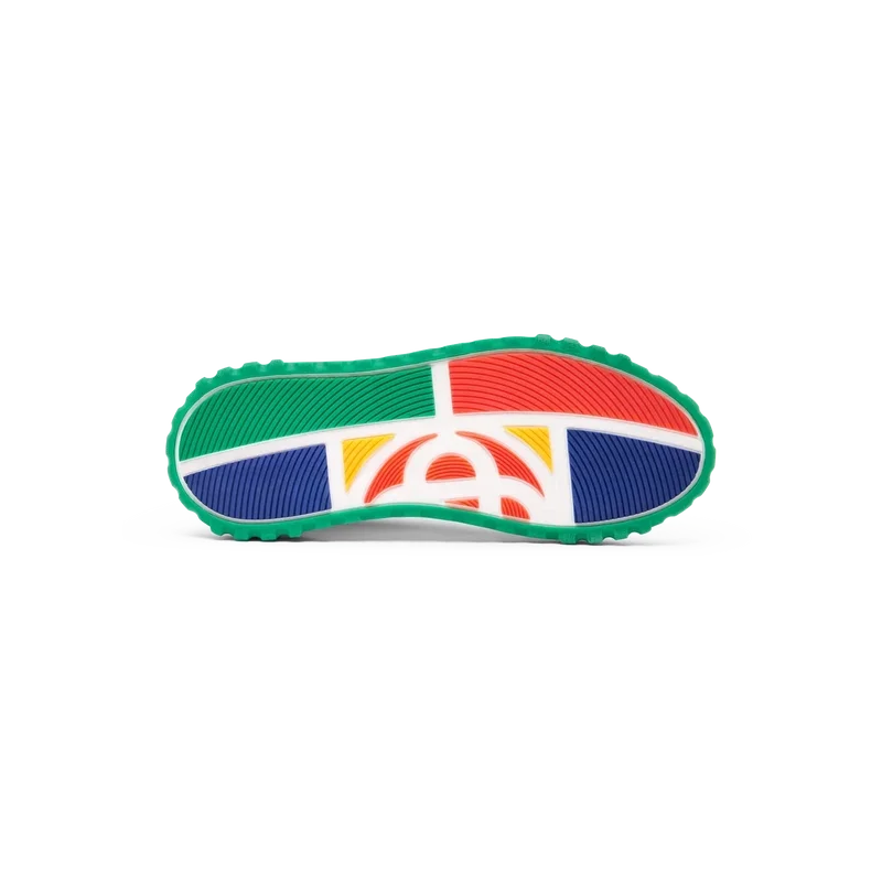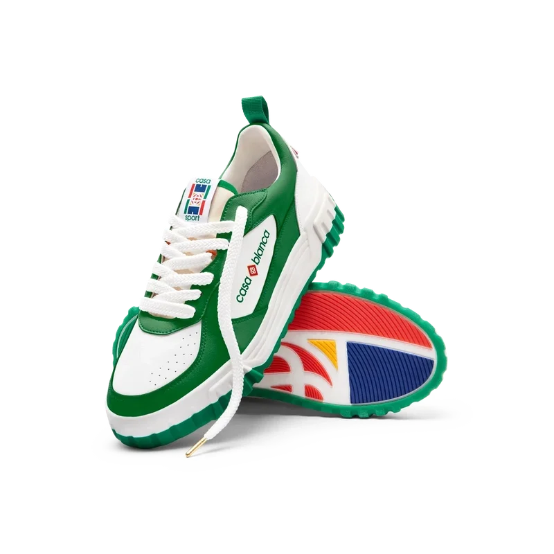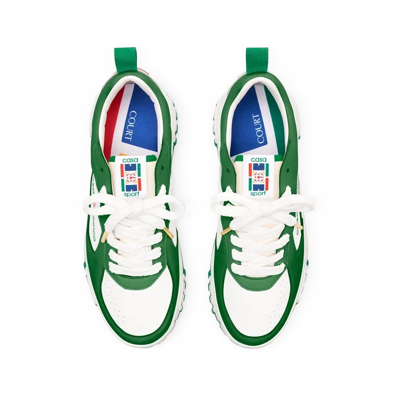 Designspråket hos Court-sneakersen speglar de ikoniska silhuetterna från 90-talet. Färgerna som återfinns över hela gummisulan är en kombination av de raffinerade koderna från tennis och klassisk arkitektur och skapar en enhetlig palett över hela skon, med fokus på primärfärger som kontrasteras av tennisvitt för att skapa en sportfokuserad färgberättelse. Övre del i tonat vitt läder Casablanca-gummipatch med diamantmönster på hälen Casablanca Sport-logotyp i silikon på sidan Vävd Court-tungetikett Yttersula inspirerad av tennisbanor i tennisinspirerade primärfärger Guldfärgade snörspetsar Tull och avgifter Observera att importtull och skatter kan tillkomma vid leverans för kunder utanför EU. Kontakta ditt lands tullkontor för att ta reda på lokala importtullar och skatter innan du köper. Du kanske vill välja en mindre storlek om du ligger mellan två storlekar.